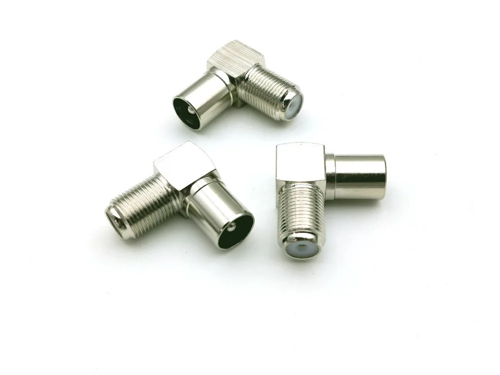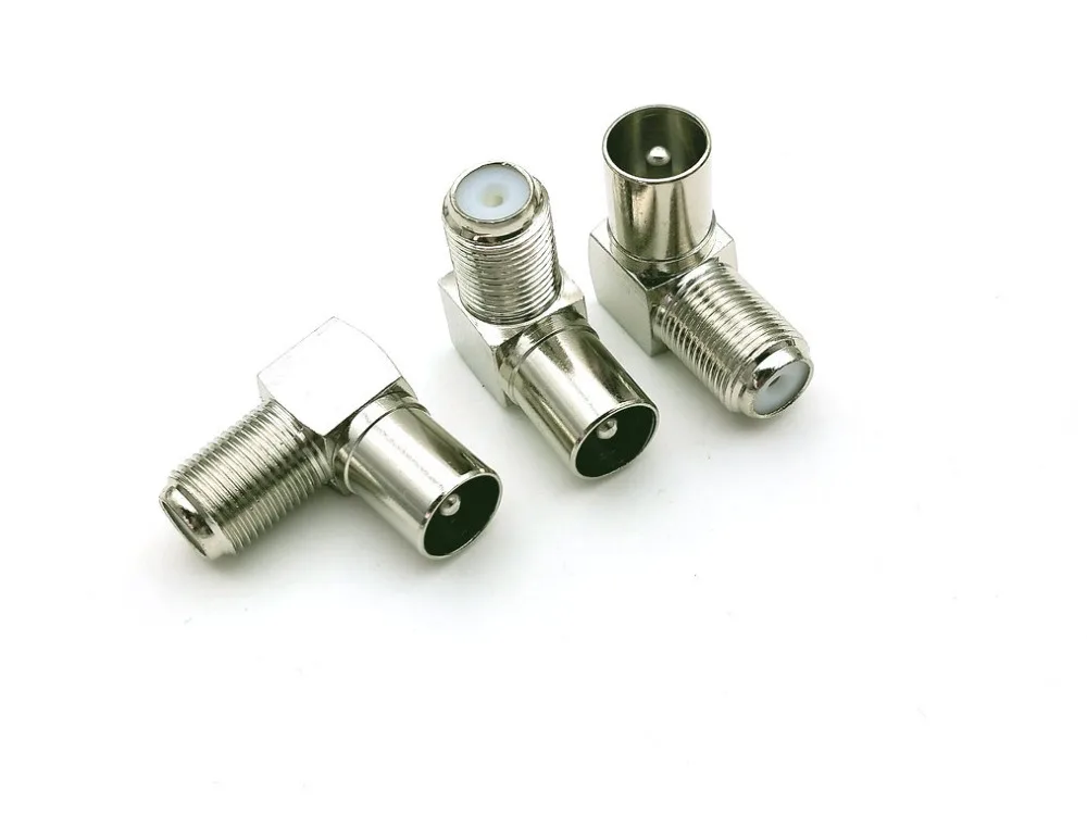 Comprar 100 piezas de cobre tipo F Coaxial, conector hembra a conector de TV de ángulo recto, adaptador macho