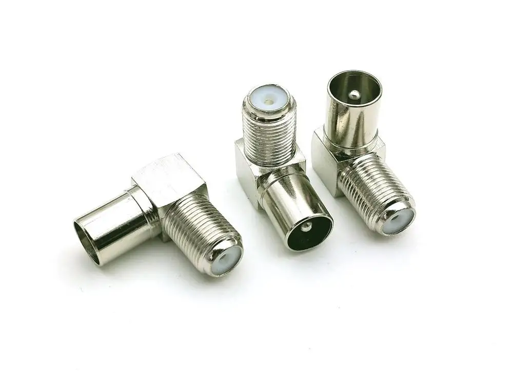 Comprar 100 piezas de cobre tipo F Coaxial, conector hembra a conector de TV de ángulo recto, adaptador macho