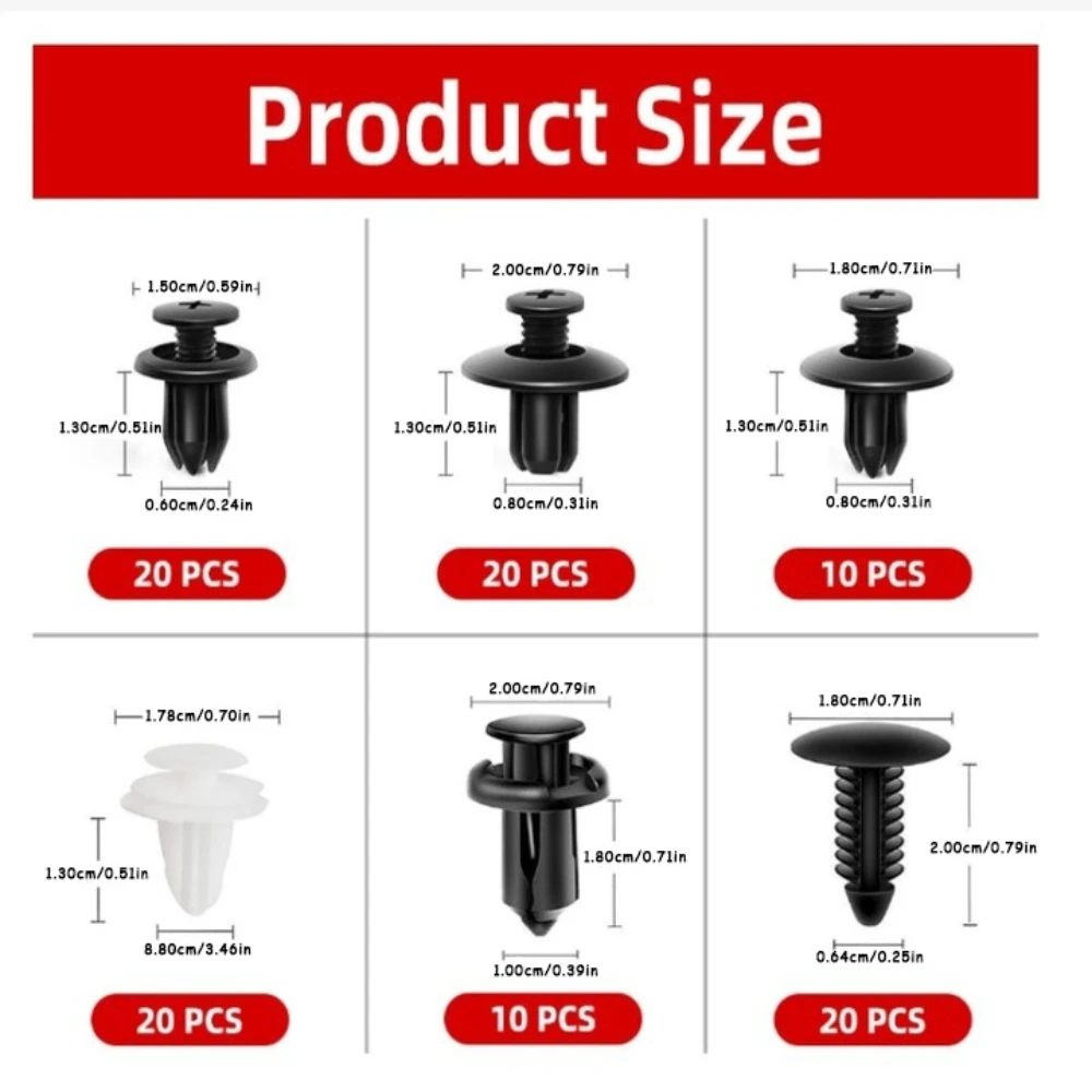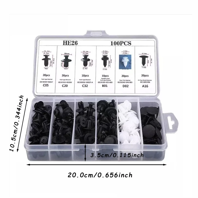 • Gran cantidad:Con 100 piezas en el kit, tiene muchos clips para múltiples reparaciones, asegurando que siempre tenga el clip correcto a mano cuando lo necesite.