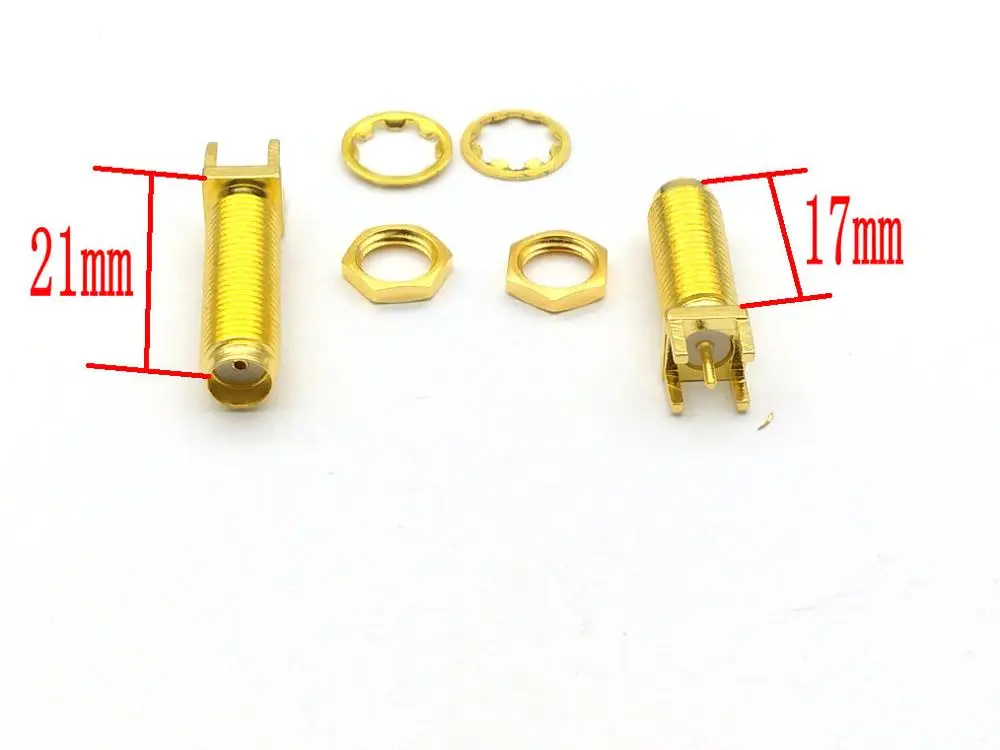 Comprar 100 piezas SMA hembra montaje en Panel PCB recto 17mm 21mm soldadura RF coaxial adaptador