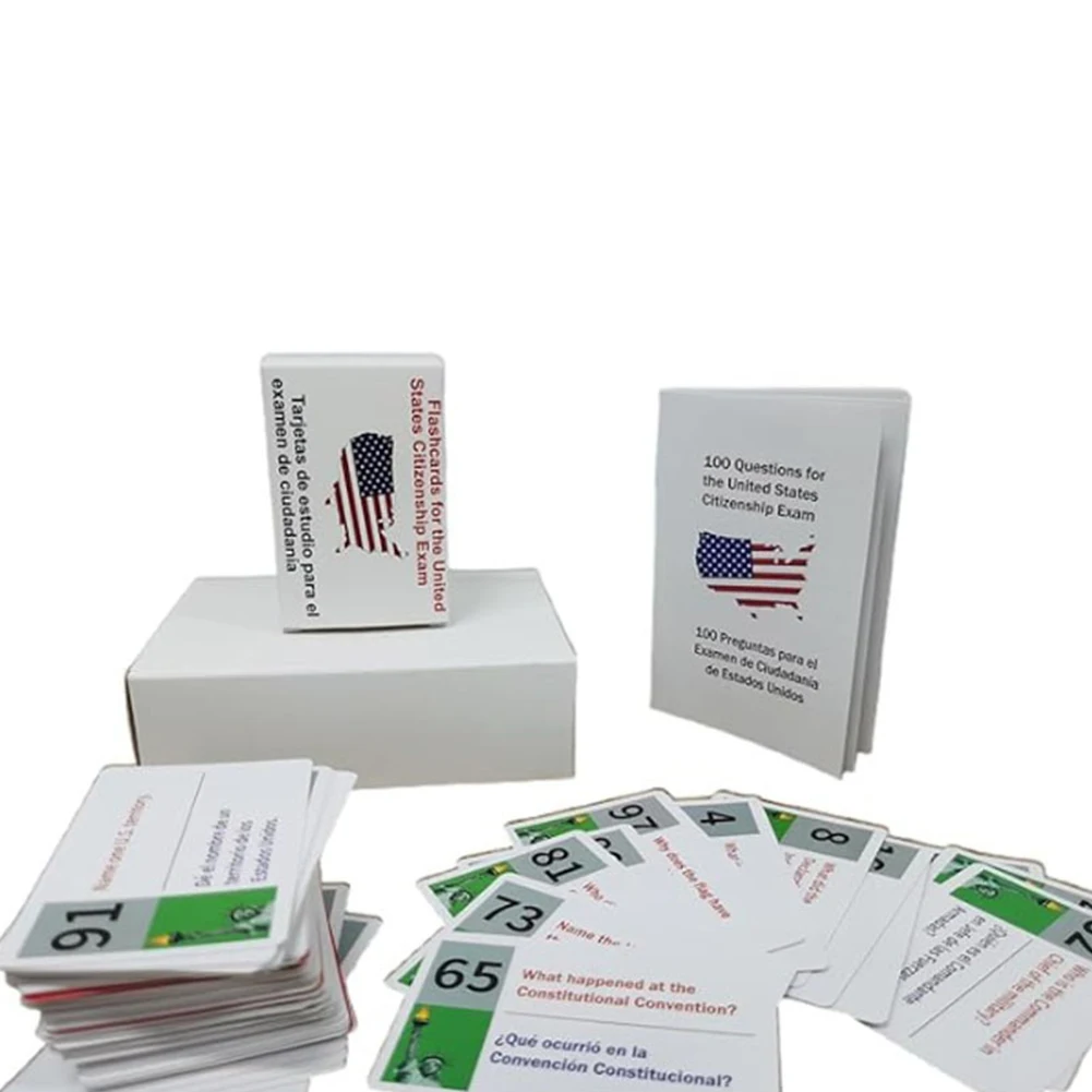 2.Guía de estudio personalizada:Incluida con 100 tarjetas didácticas de preguntas y respuestas de uscis, la guía ayuda a consolidar el conocimiento y garantizar el éxito en su viaje de naturalización con facilidad.