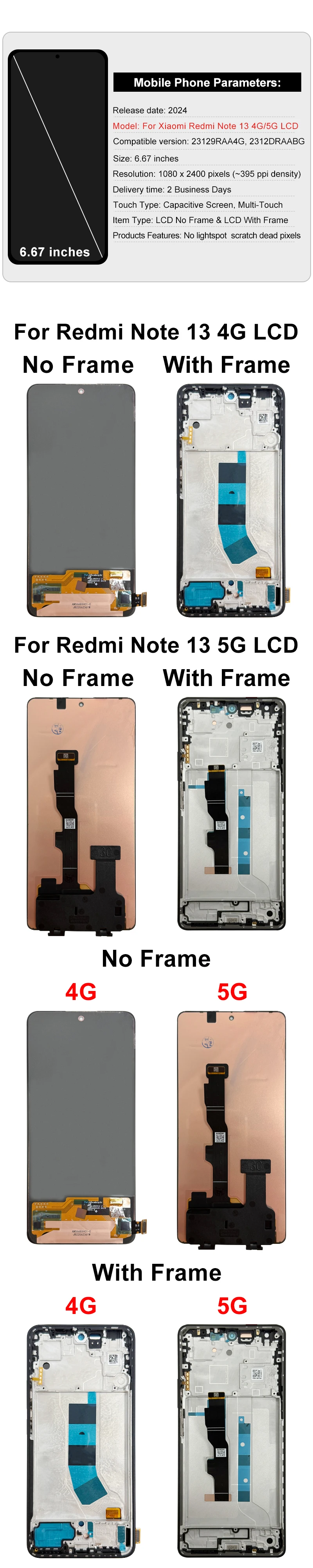 Pantalla AMOLED para Xiaomi Redmi Note 13 4G pantalla LCD Digital pantalla táctil digitalizador Panel montaje para Redmi Note 13 5G 2312DRA