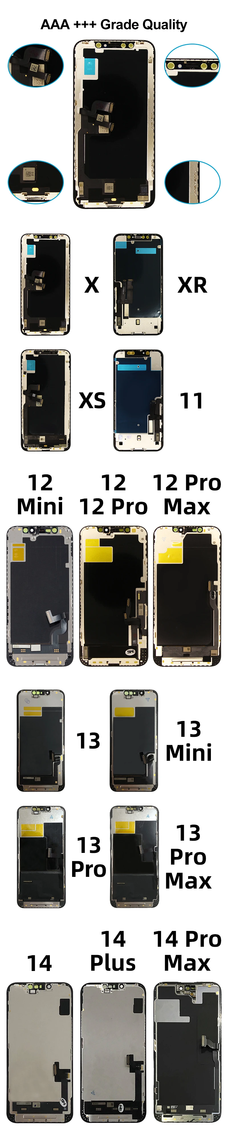 100% probado de alta calidad nuevo OLED para iPhone X XR XS MAX pantalla 3D digitalizador de pantalla táctil para 11 12 13 Pro Max 13 Pro pieza de repuesto LCD
