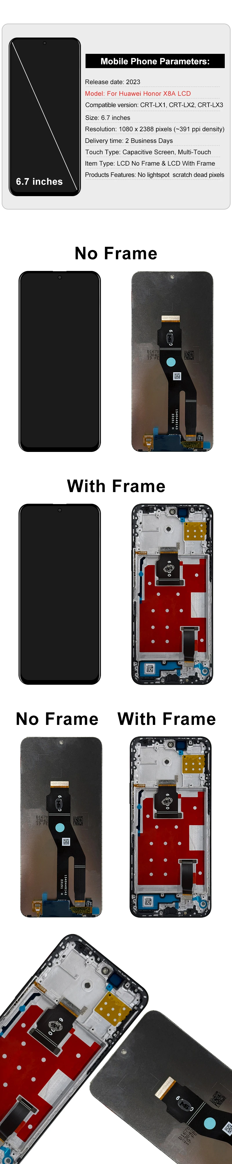 100% probado LCD para honoX8A CRT-LX1 CRT-LX2 CRT-LX3 pantalla LCD conjunto de digitalizador de pantalla táctil para honor X8A reemplazo de pantalla