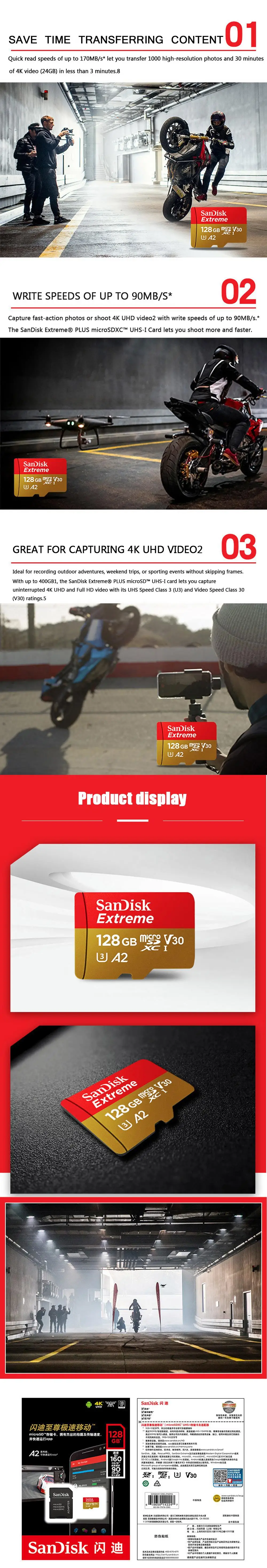 Comprar 100% Sandisk Extreme Micro SD TF 512GB 1TB tarjeta de memoria 32GB 64GB 128GB 256GB para teléfono Drone cartao de memoria coches 4K U3 cámara