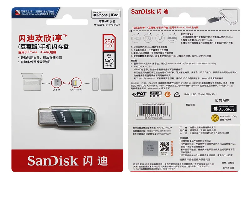 Comprar 100% Sandisk USB 3,1 unidad Flash iXpand 64GB 128GB 256GB disco Flash con puerto Lightning tipo A Memory Stick teléfono ordenador trabajo