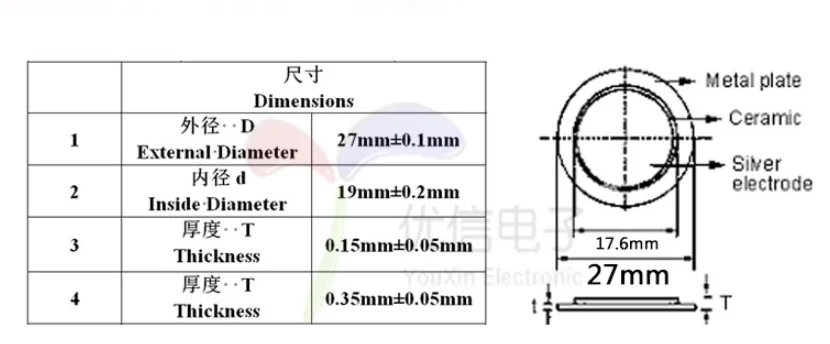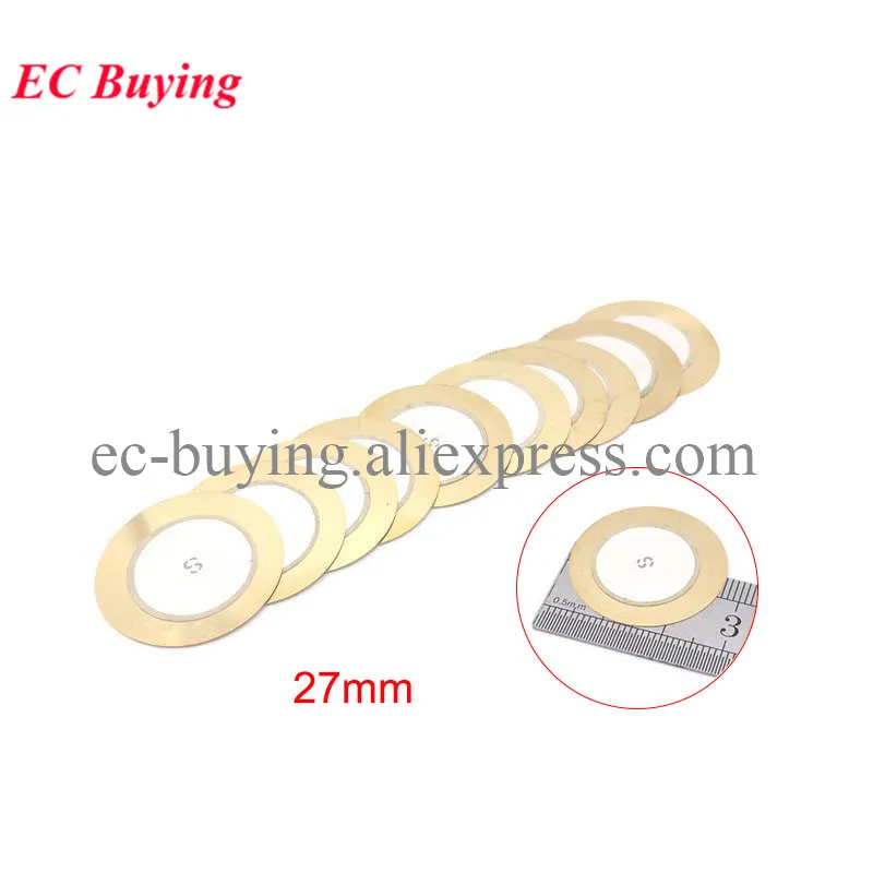 Comprar 100 uds/10 Uds 27mm 0,33mm de espesor disco piezoeléctrico de cobre hoja de cerámica zumbador Sensor de presión altavoz DIY electrónico