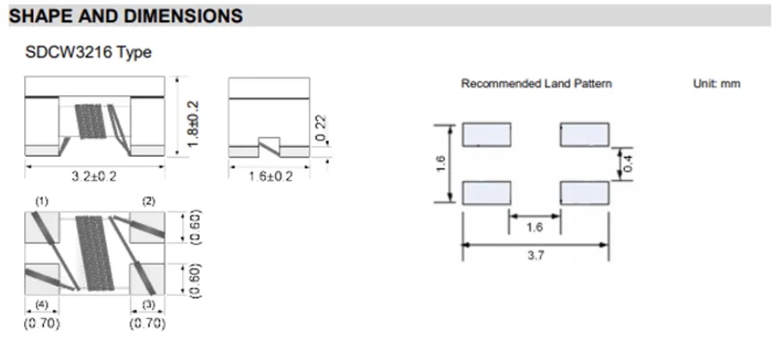 100 uds/10 Uds SDCW3216 SDCW3216-2 1206 Chip filtro de modo común bobina de estrangulación impedancia 90R 600R 1KR 2.2KR ± 25% 100MHz