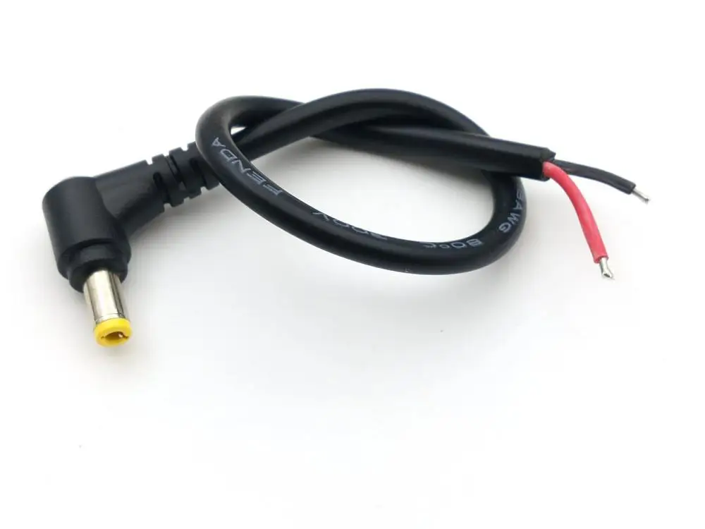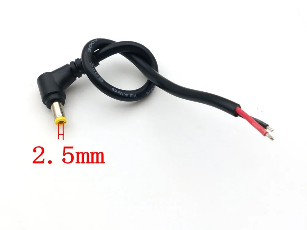 Comprar 100 Uds. 2,5mm x 5,5mm DC Power, enchufe macho de ángulo recto, CABLE de 18awg, 26cm