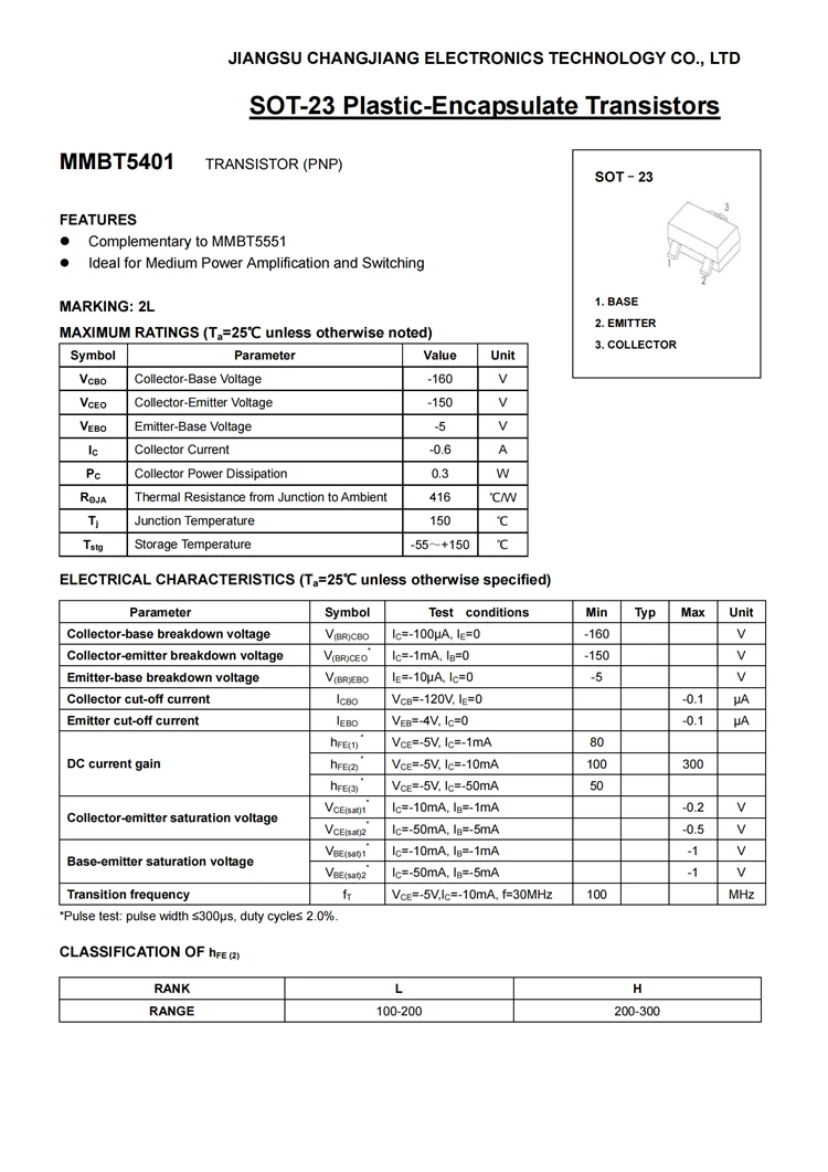 MMBT5401 2L SOT23