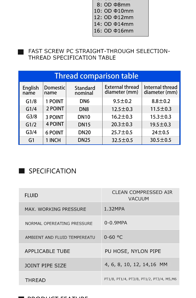 Preste atención al tamaño de la rosca externa, el diámetro interior y el diámetro exterior de la manguera conectada.