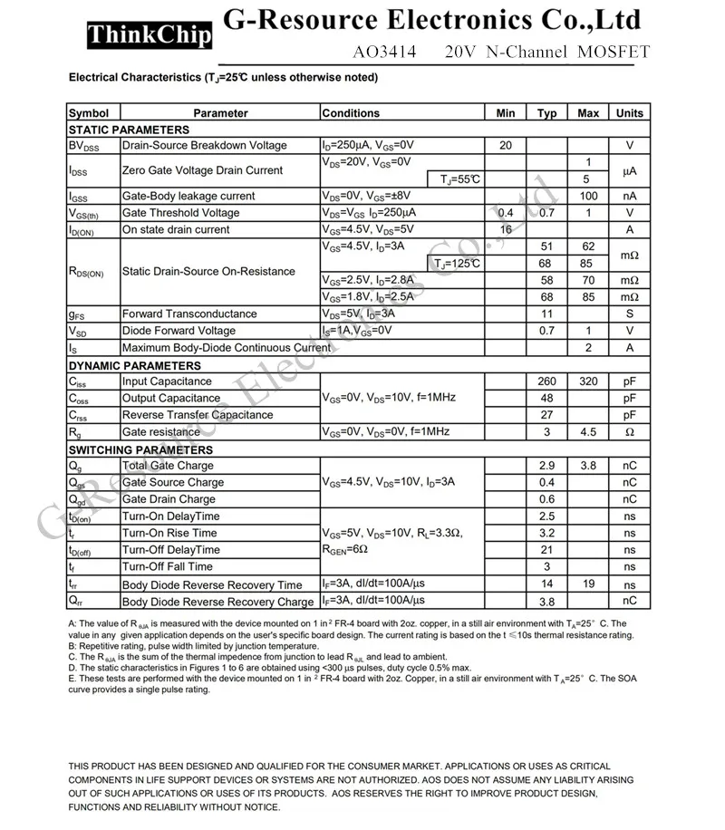 Comprar (100 uds) AO3414 A0LA X0RB SOT-23 transistor mosfet SMD de canal N nuevo original