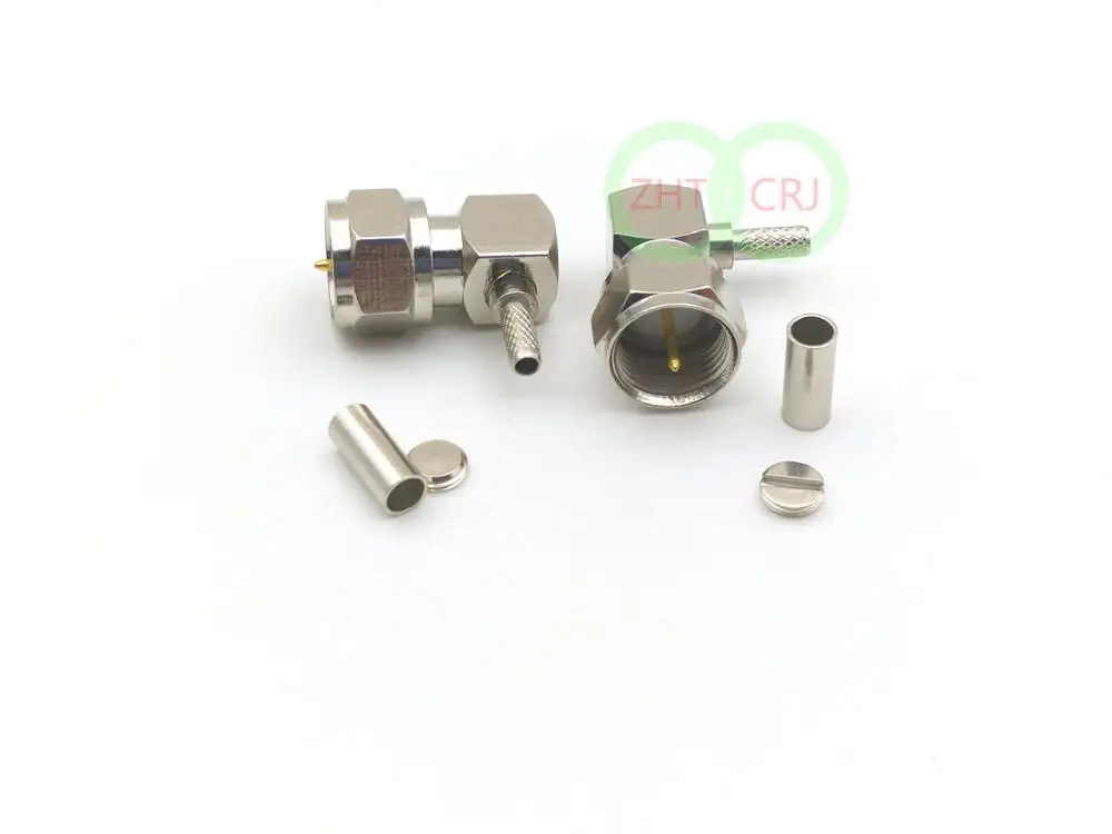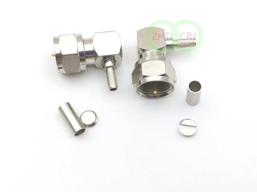 Comprar 100 Uds conector Rf de ángulo recto de enchufe de engarzado F de latón para Cable RG316 RG179 RG174 RG178