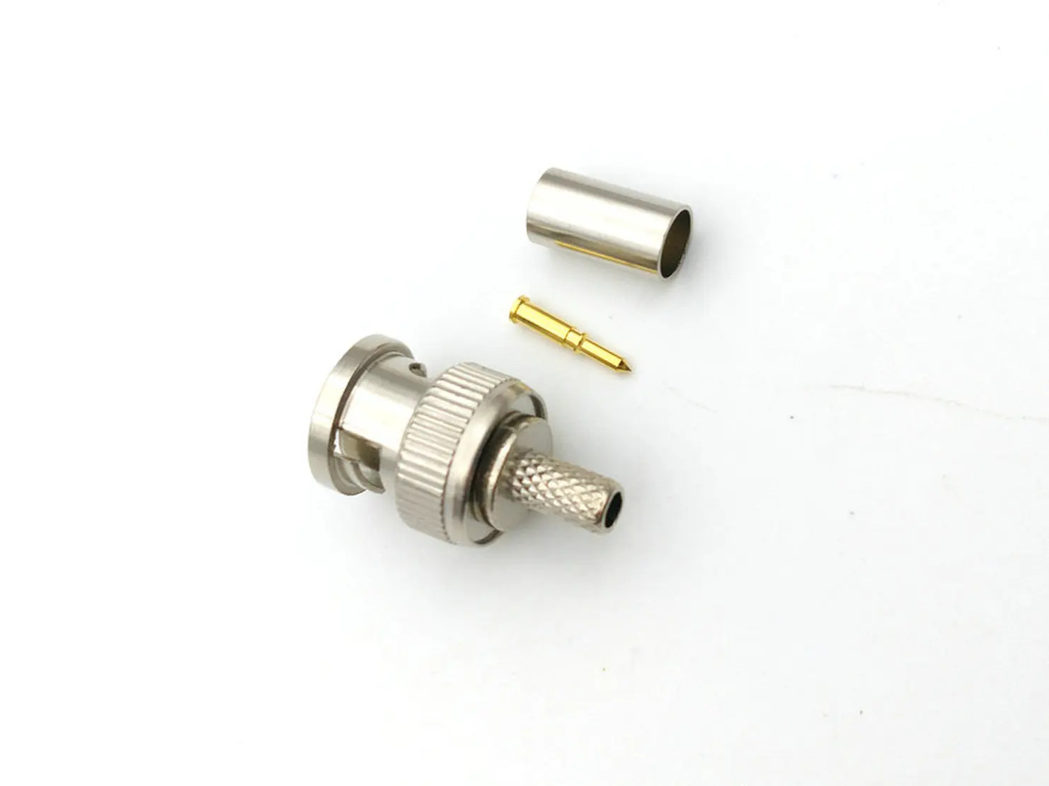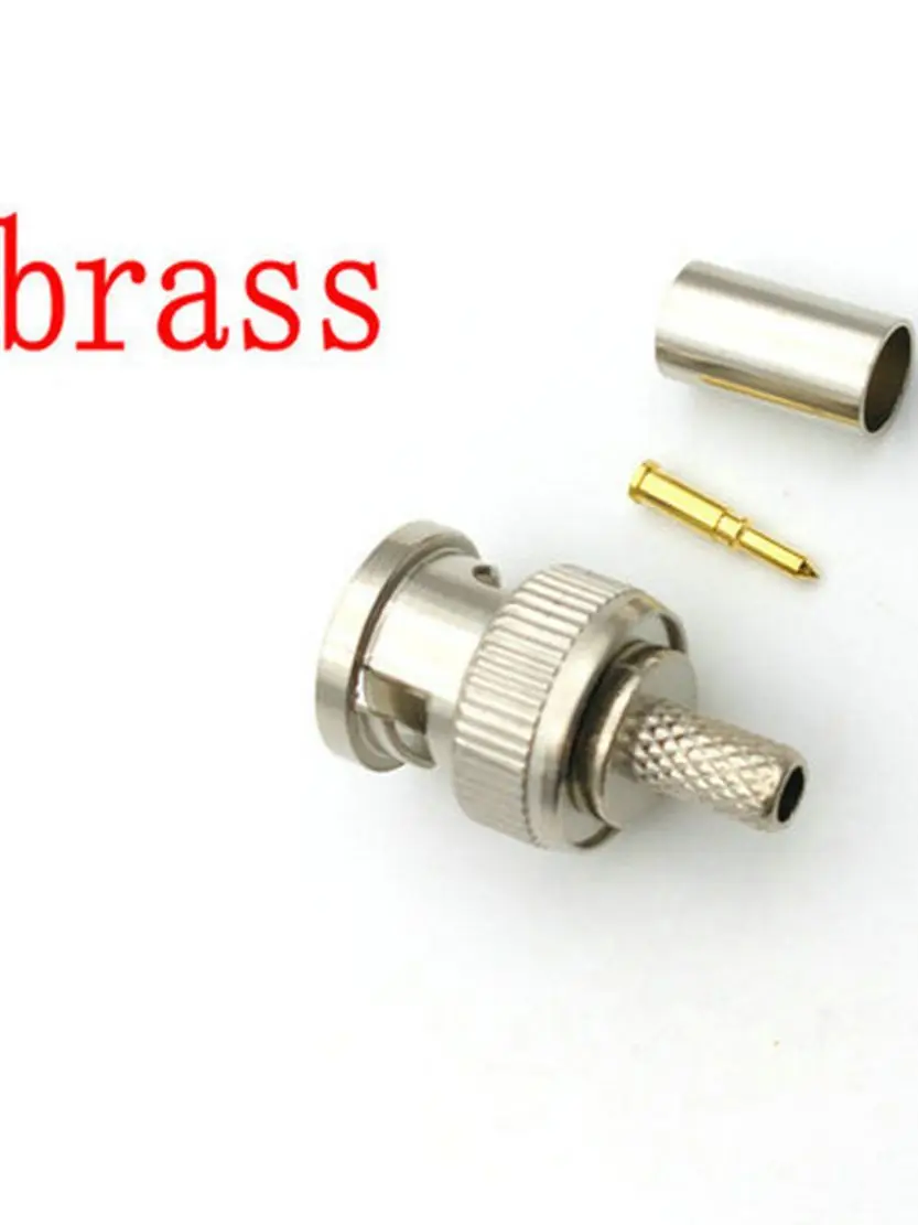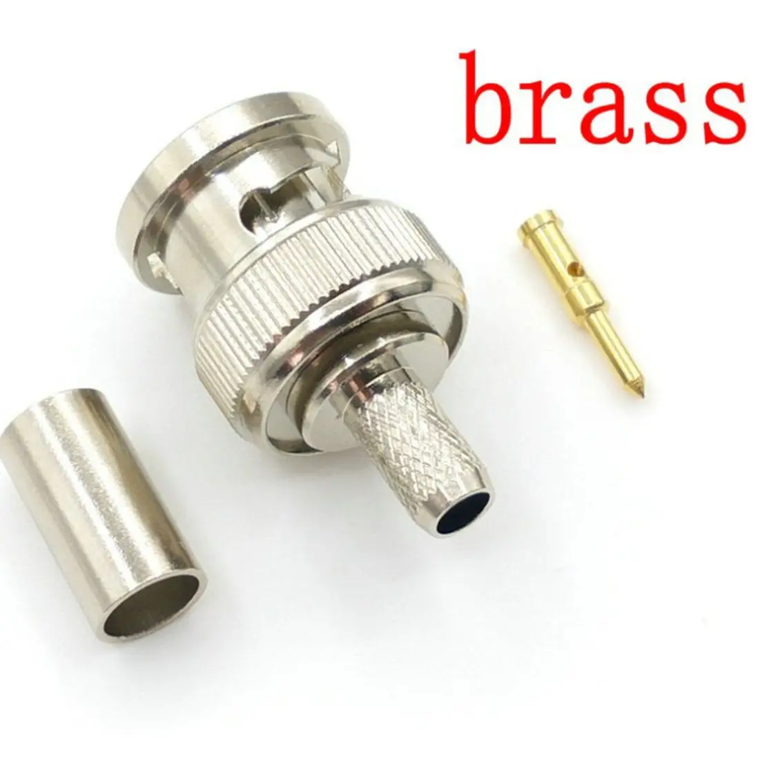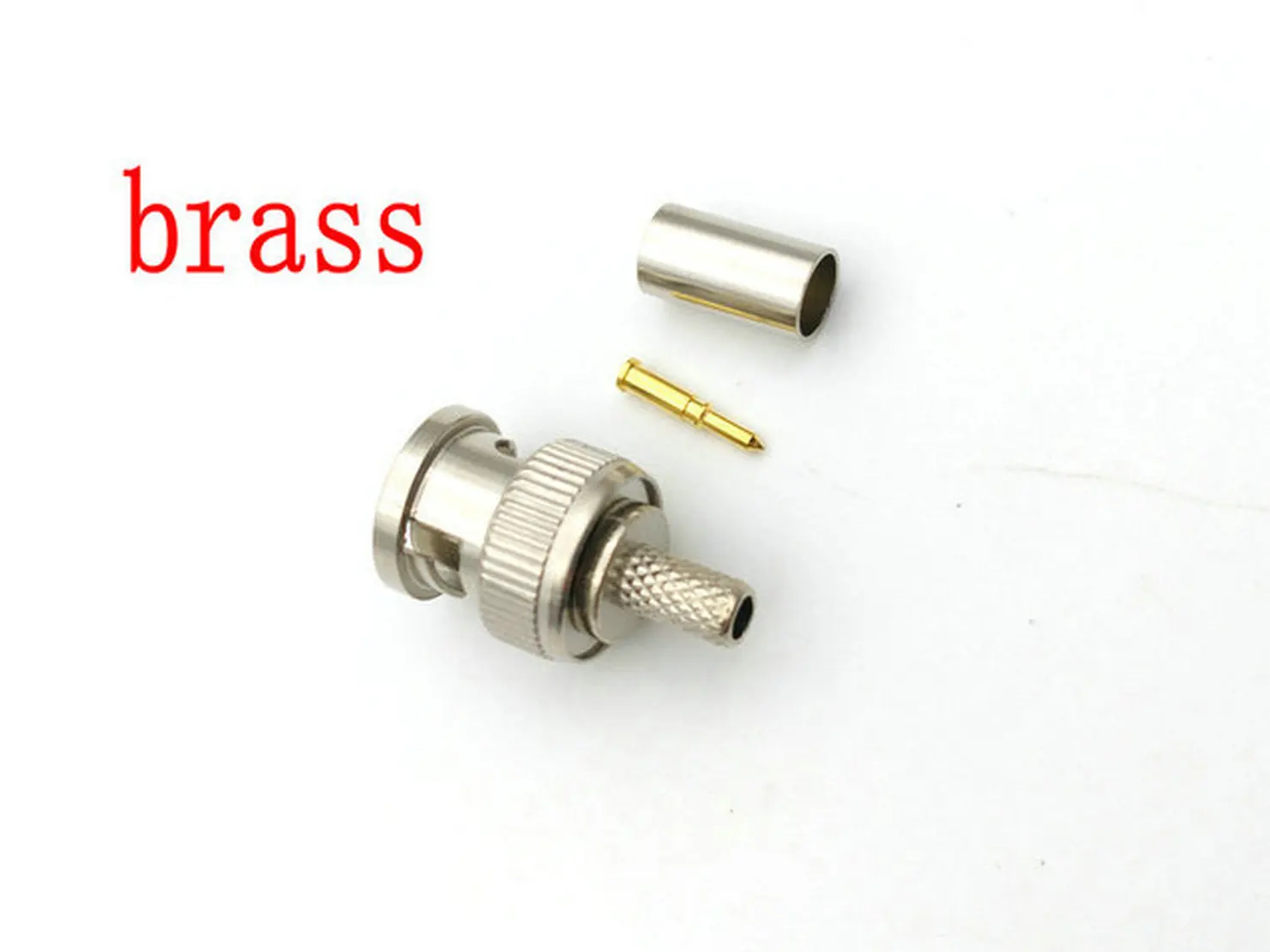 Comprar 100 Uds. Conectores de engarzado de enchufe BNC de latón para conector de cable de antena macho coaxial RG58 RG-58
