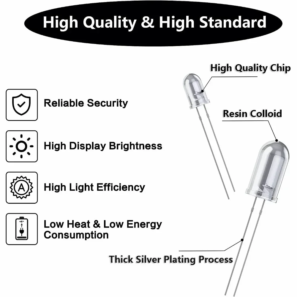 Kit surtido de diodos LED ampliamente utilizado en proyectos de ciencias escolares, reemplazo de bombillas, experimentos de diversión familiar, luces navideñas, decoraciones de disfraces de Halloween, circuitos de aprendizaje, luces de hosts de computadora, luces de modelos de ferrocarriles, etc.