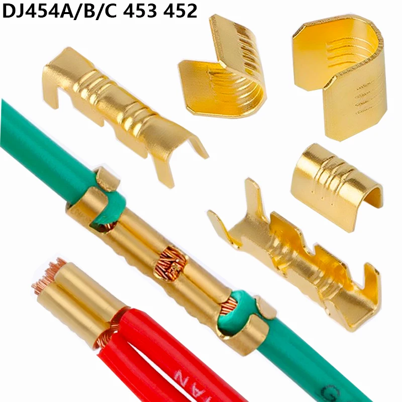 Comprar 100 Uds. Terminales de anillo de cobre en forma de U, conectores de engarzado de empalme a tope de Cable de coche y motocicleta no aislados DJ454A/B/C 453 452
