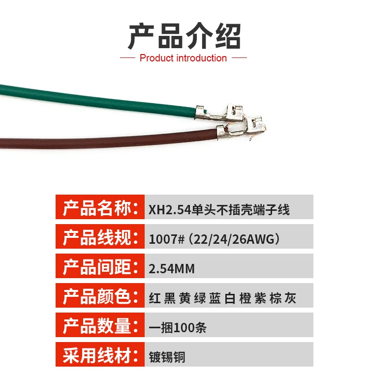 100 Uds XH2.54mm paso de un solo cabezal cables terminales de Color 22AWG/24AWG/26AWG rojo negro cables de conector electrónico 10CM ~ 50CM