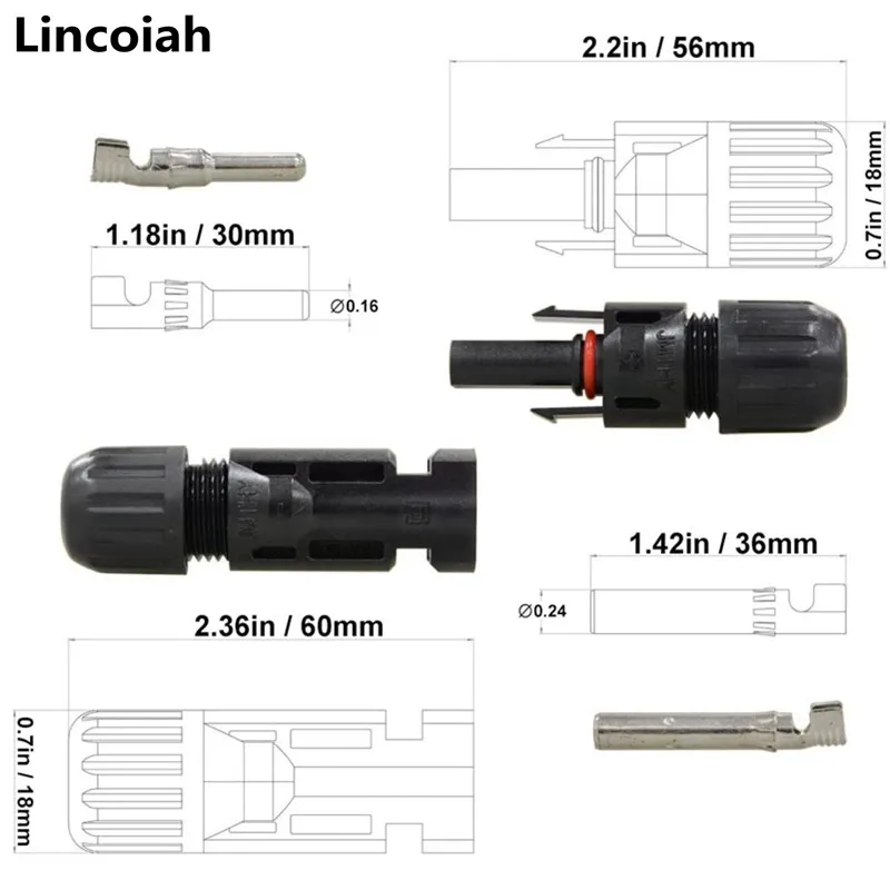 Comprar 100 unidades/50 pares de conectores de Cable de enchufe Solar (macho y hembra) para paneles solares y sistemas fotovoltaicos