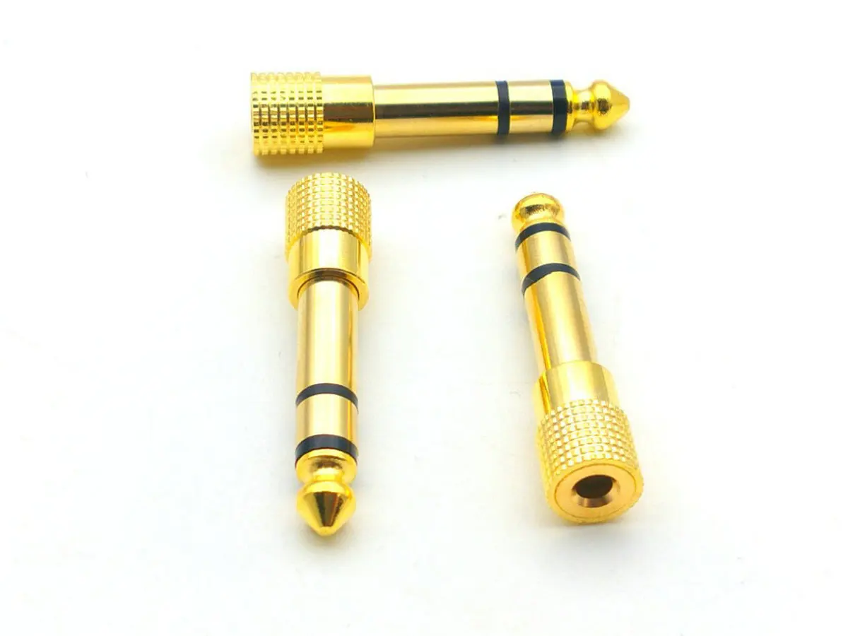 Comprar 100 unidades de Audio chapado en oro, enchufe macho de 6,35mm a conector hembra de 3,5mm, adaptador Aux estéreo TRS