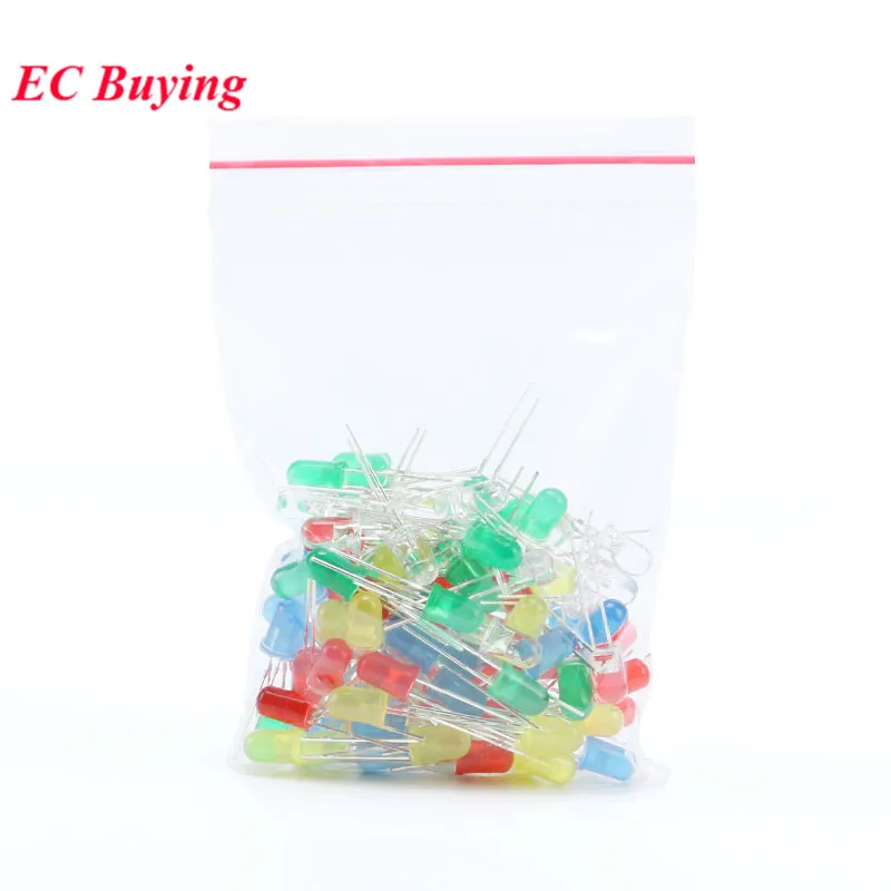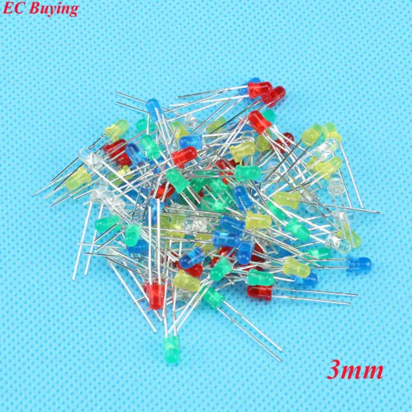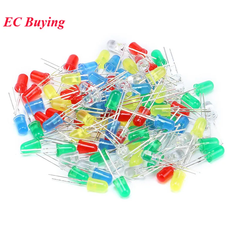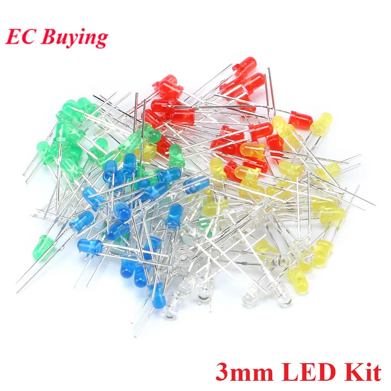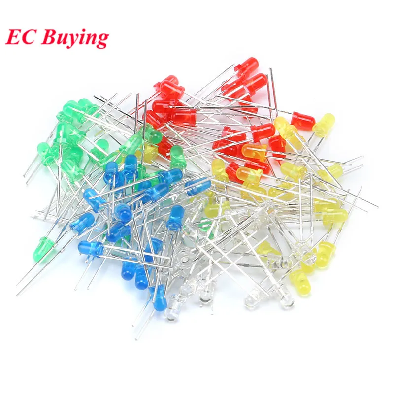 Comprar 100 unids/lote 3mm diodo LED diodos emisores de luz blanco amarillo rojo verde azul Kit surtido DIY 5 colores * 20 piezas