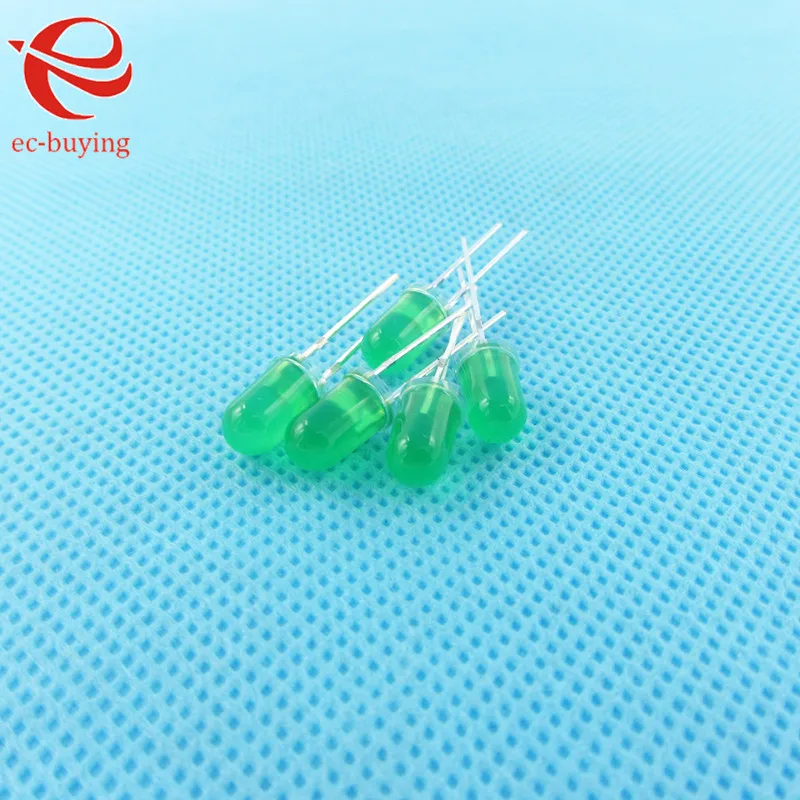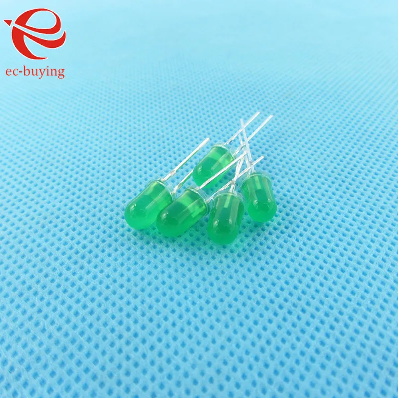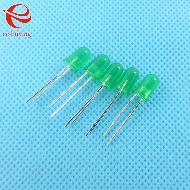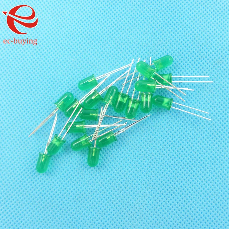Comprar 100 unids/lote F5 5mm LED verde esmeralda difuso redondo diodos emisores de luz lámpara cuenta DIP enchufable agujero pasante bombilla gran angular DIY