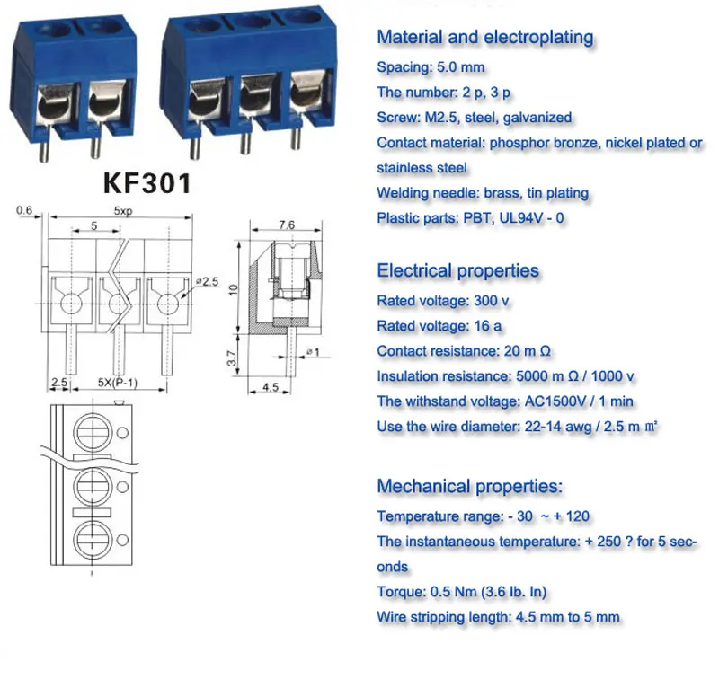 100 unids/lote PCB 3P 301 Terminal de conexión 5,08 MM conector de empalme 15A/300V venta al por mayor especial