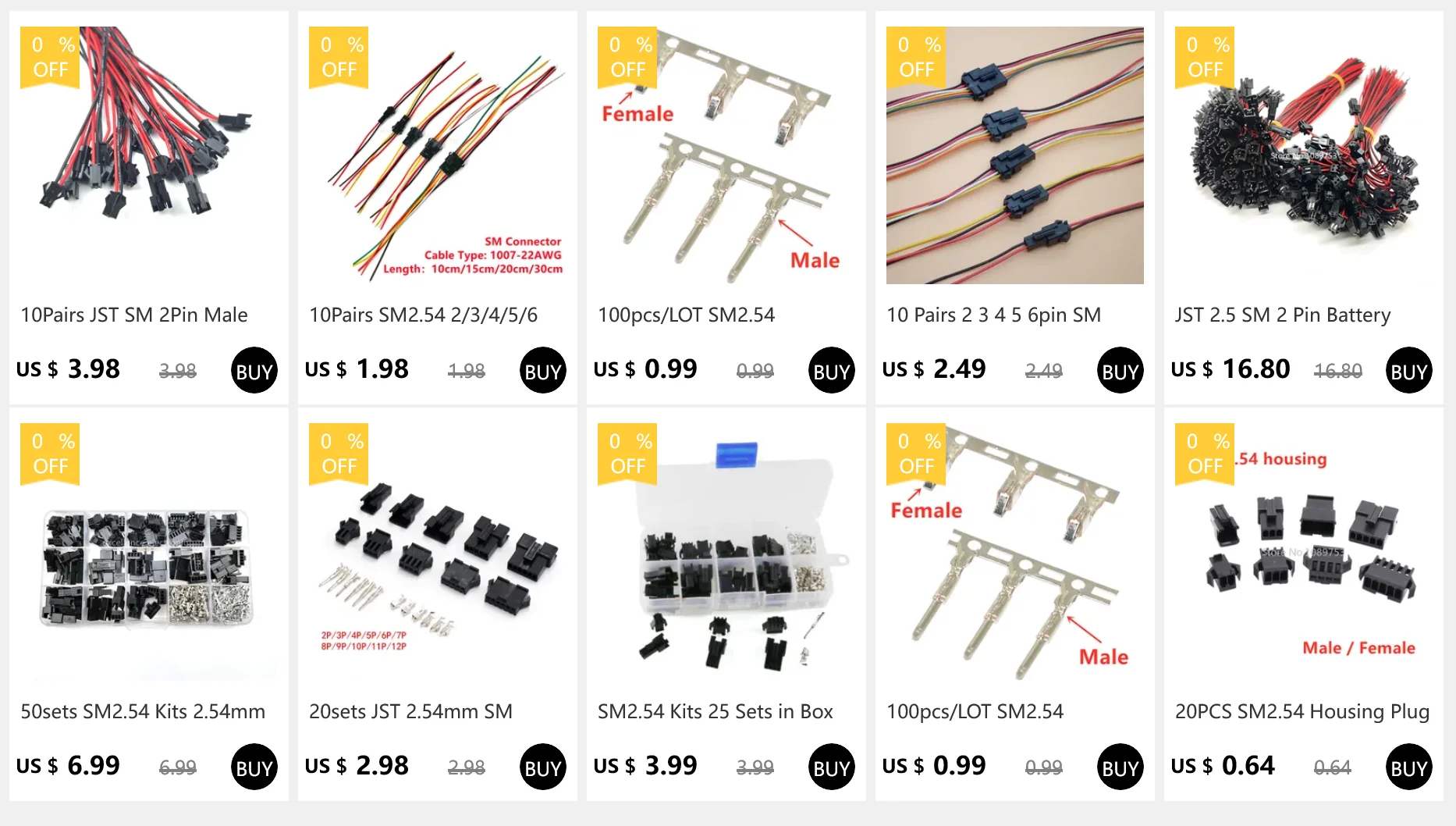 Comprar 100 unids/lote SM2.54 Terminal SM macho hembra pines de engarzado para carcasa SM 2,54mm conector macho hembra