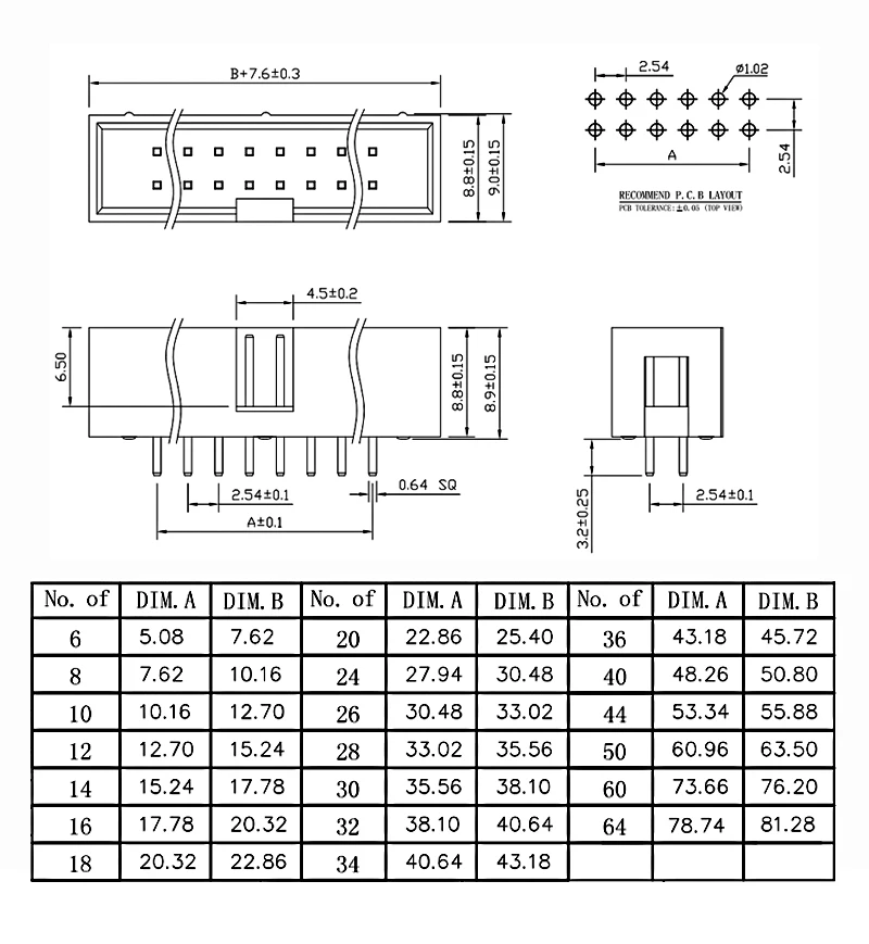 Sumerja 6/10/20/26/34/40 PIN, conector macho con paso de 2,54MM, encabezados rectos de caja idc, CONECTOR de PCB, doble fila, 10P/20P/40P DC3, cabezal