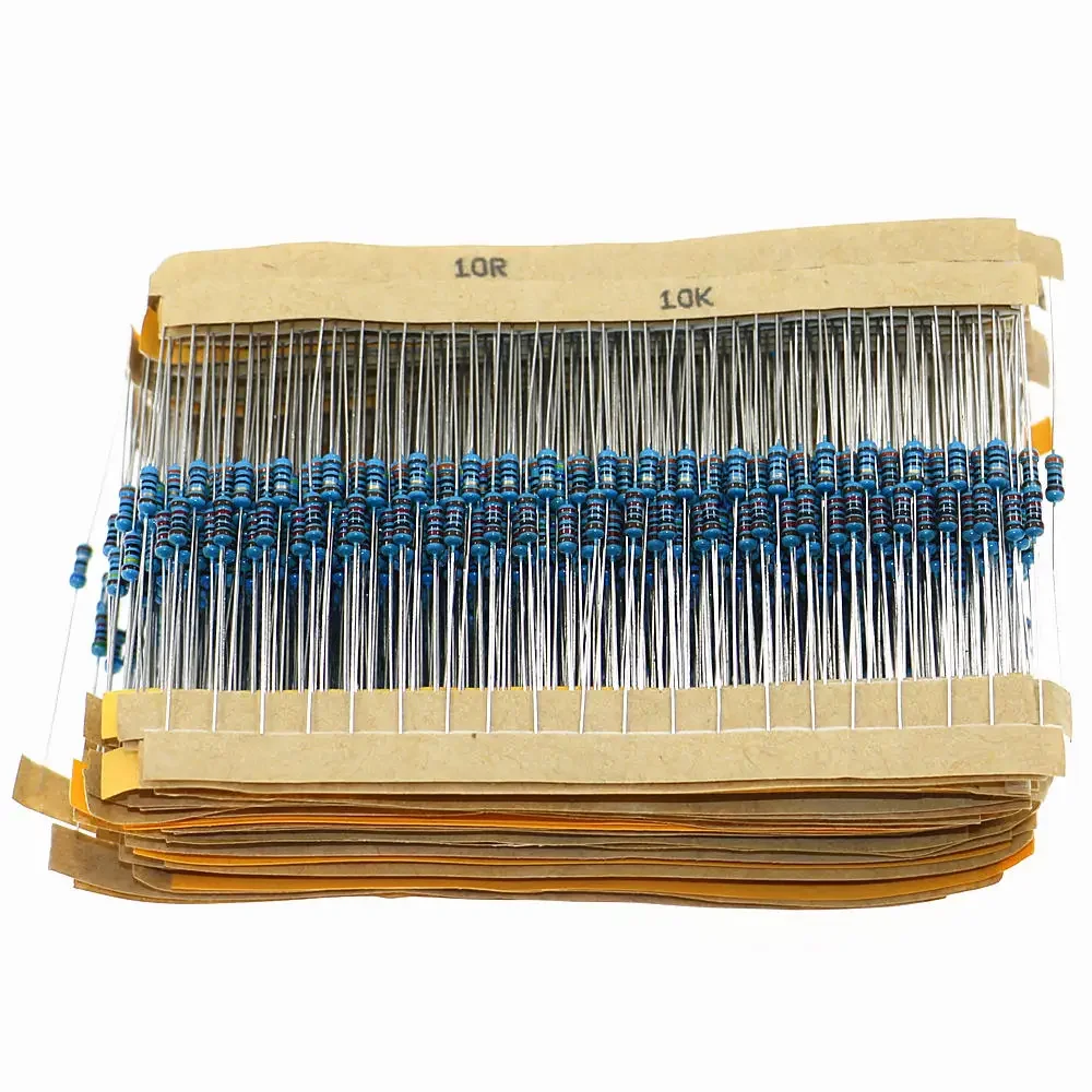 Juego de surtido de resistencias de película metálica de 1000 piezas, 50 valores, 1/4W, 1%