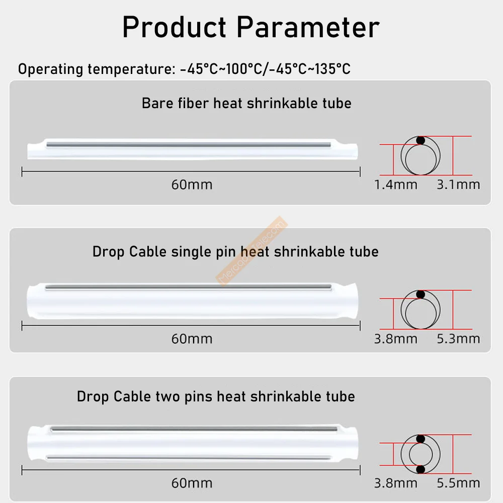 Comprar 1000 unids/lote 40mm 45m 60mm mangas de empalme de protección de fusión de fibra óptica Tubo termorretráctil tubo de fusión en caliente de fibra óptica para Cable de caída