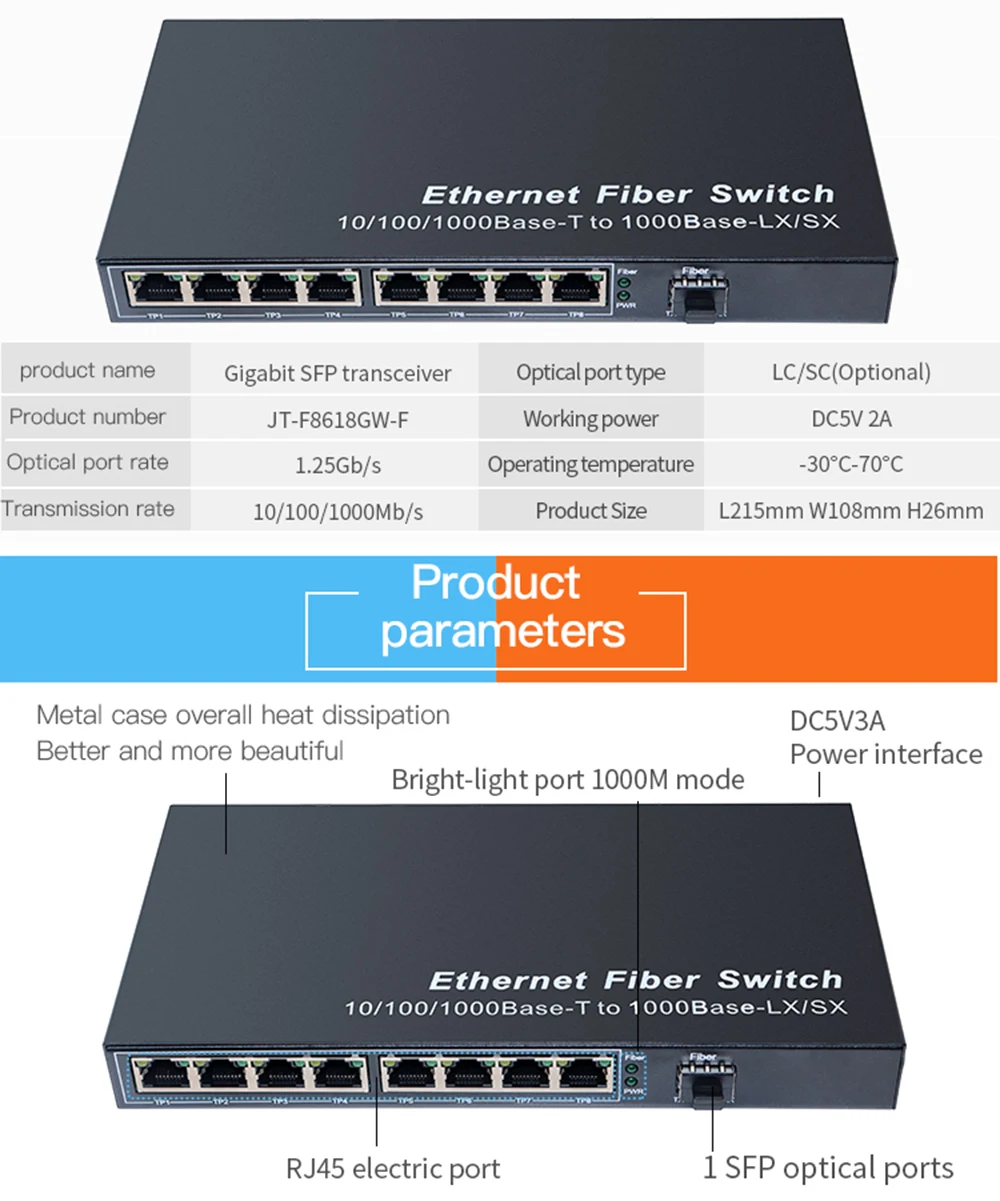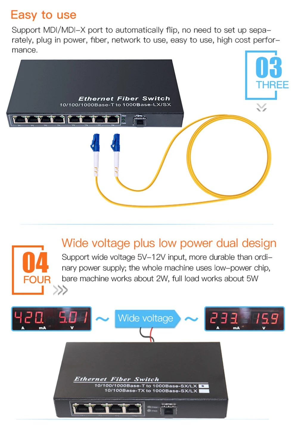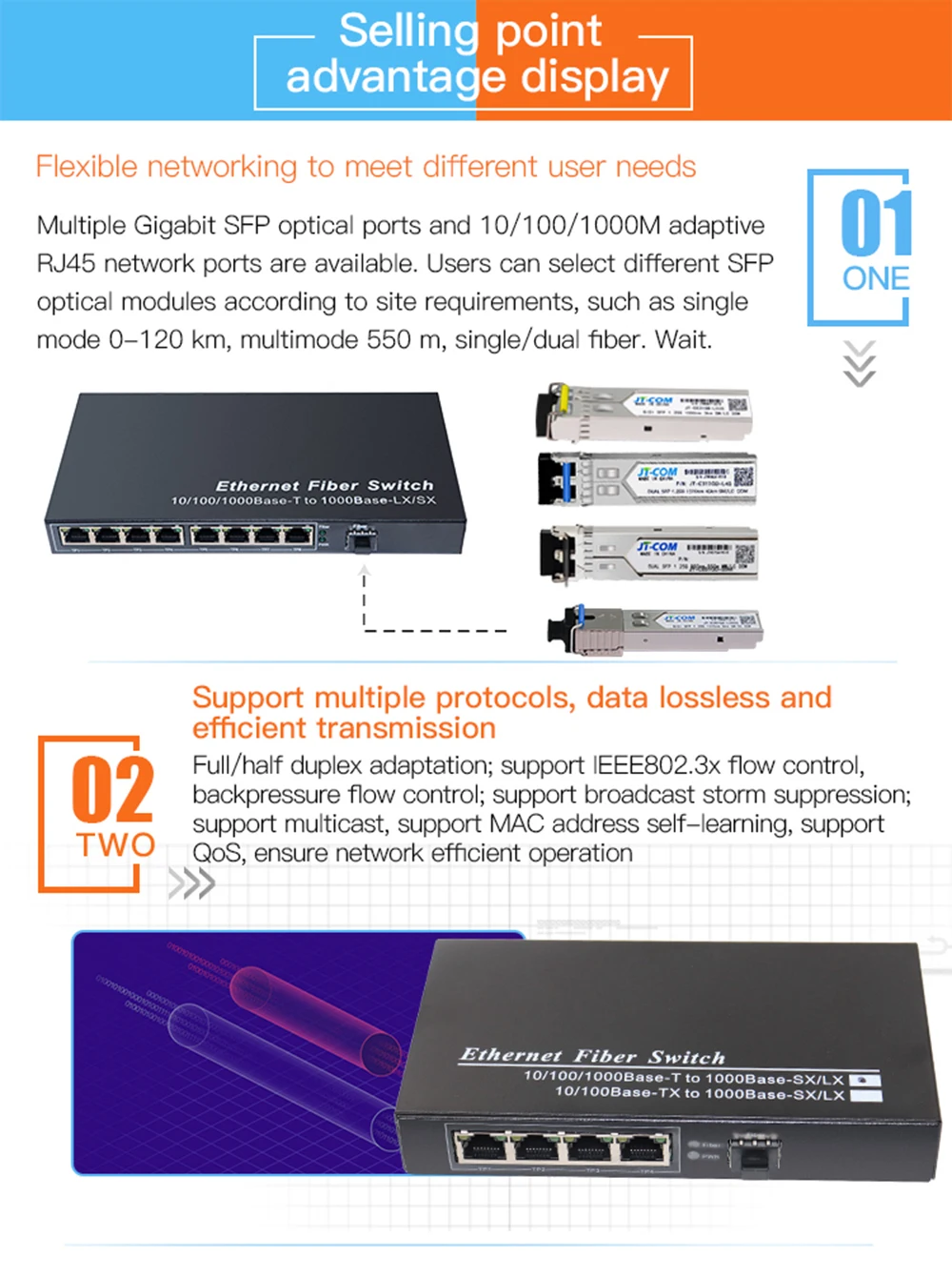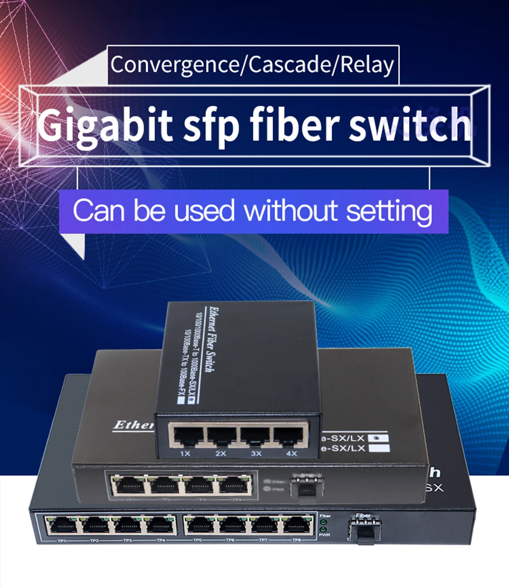 Comprar 1000M 1G4E 1 ranura sfp fibra 4 8 RJ45 1G4E Gigabit convertidor de medios ópticos interruptor de red Ethernet transceptor de fibra óptica