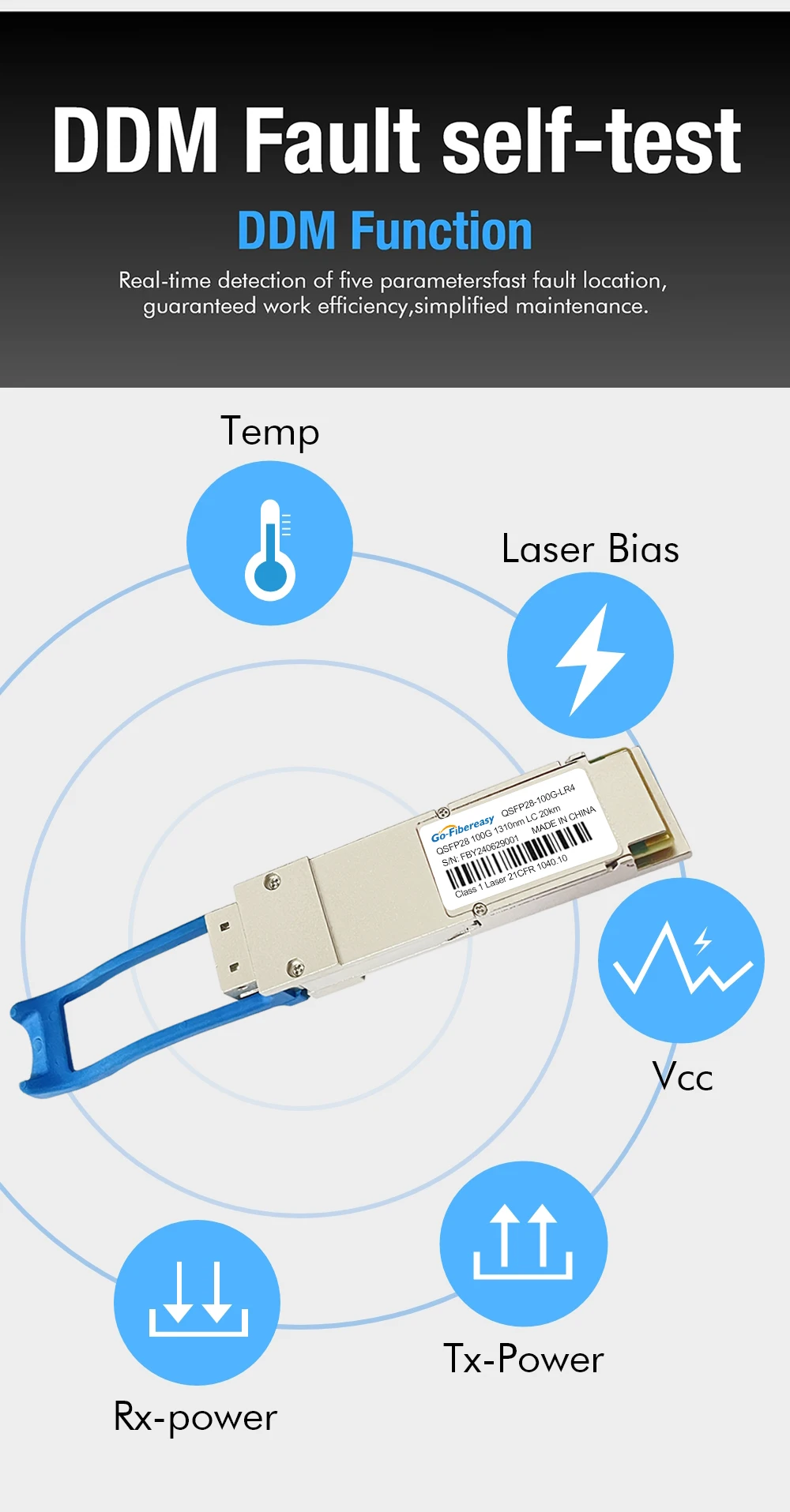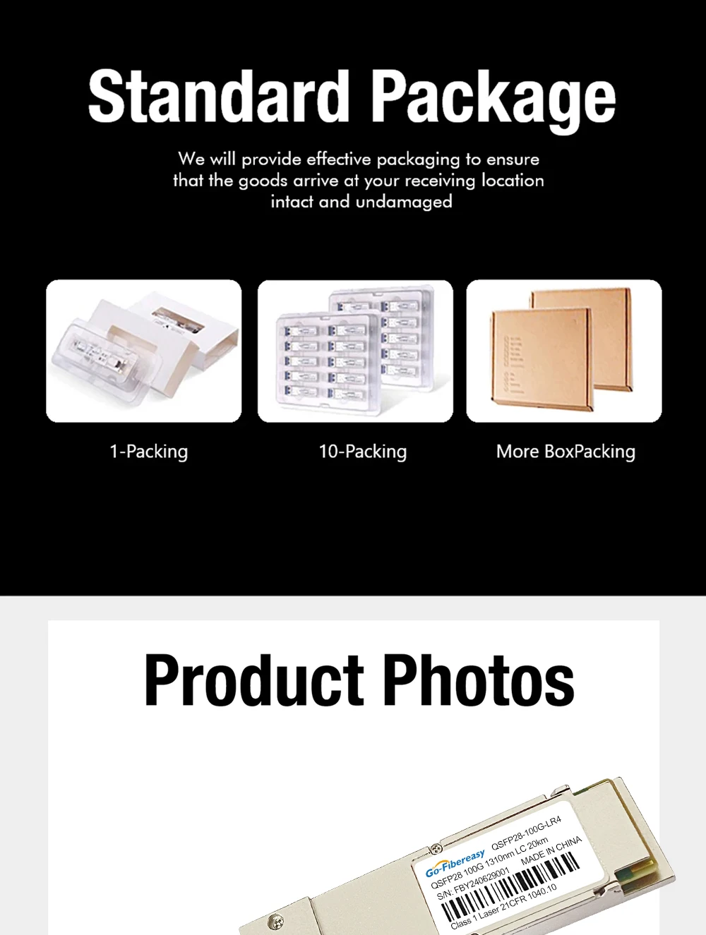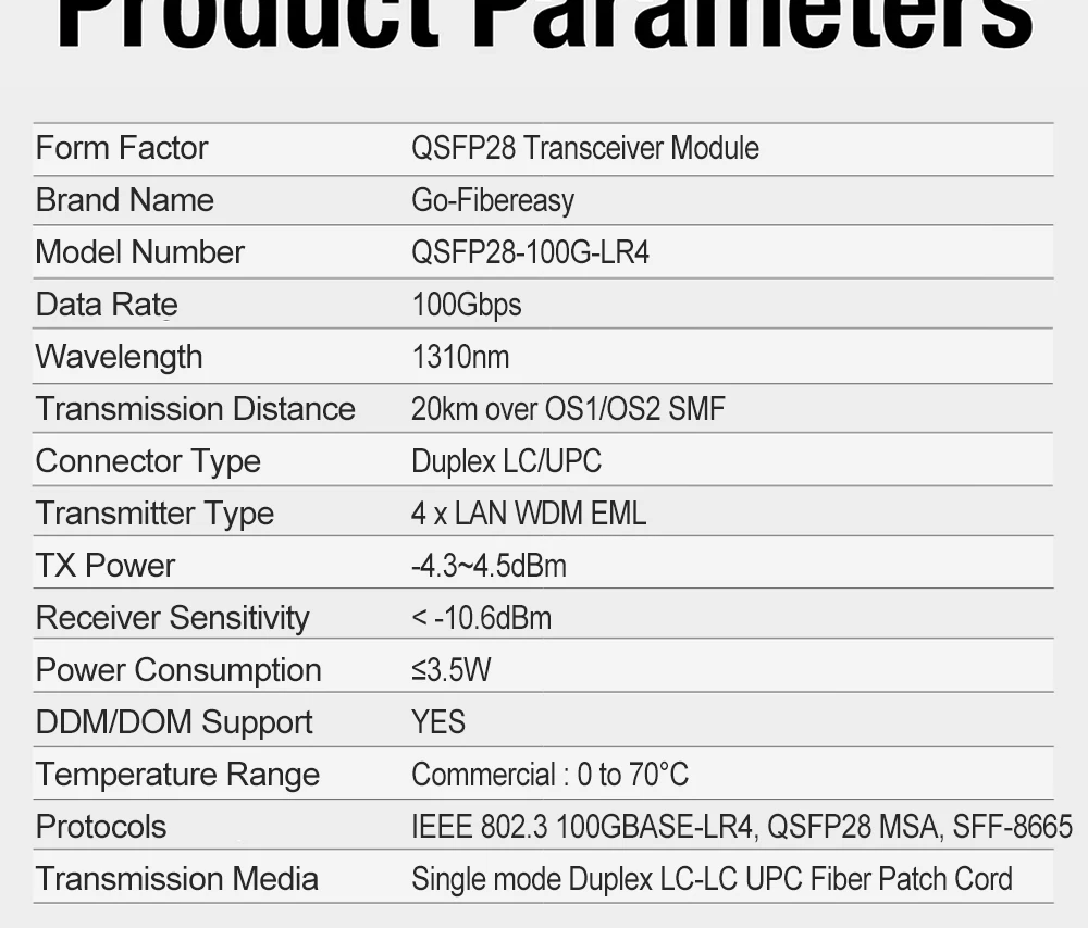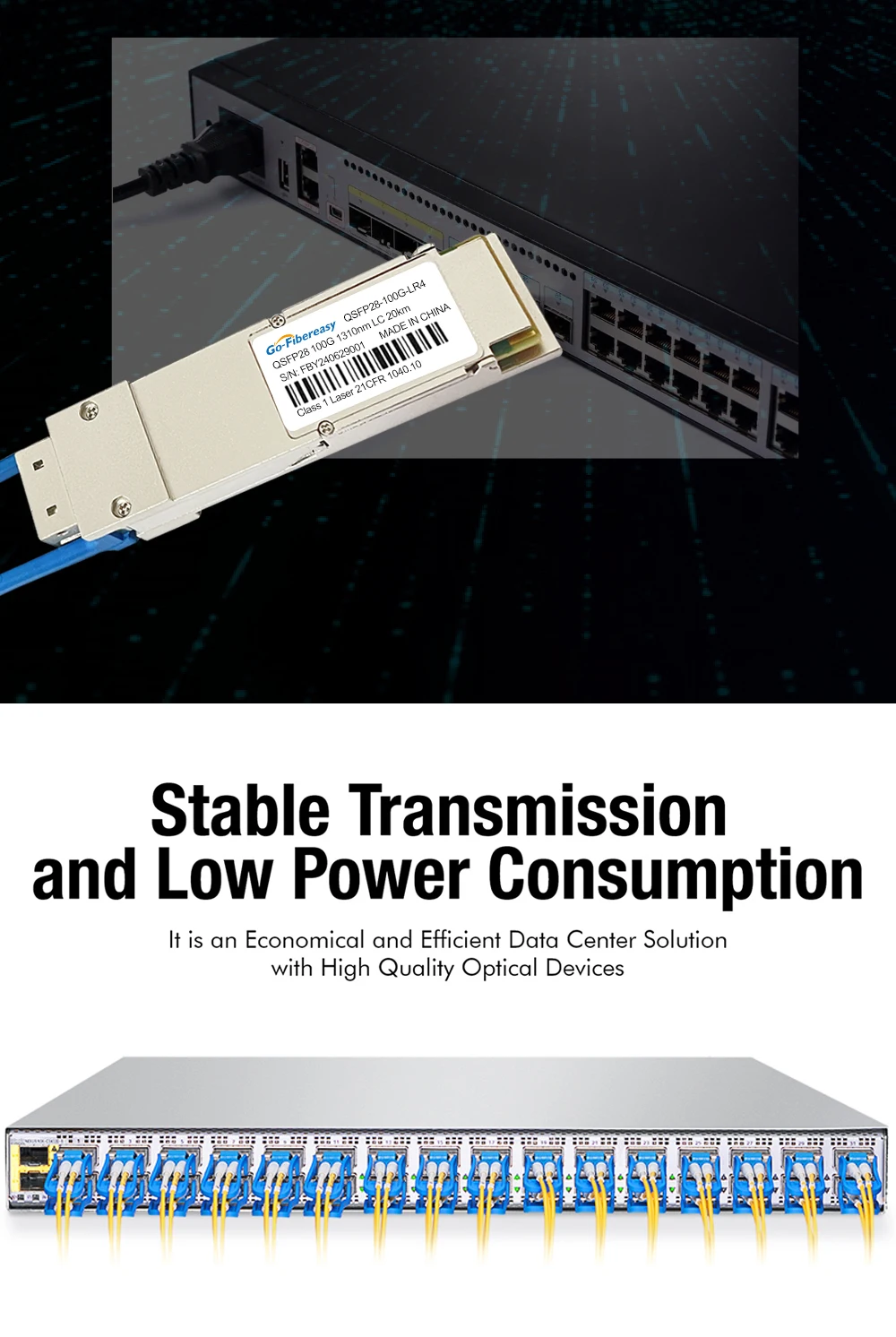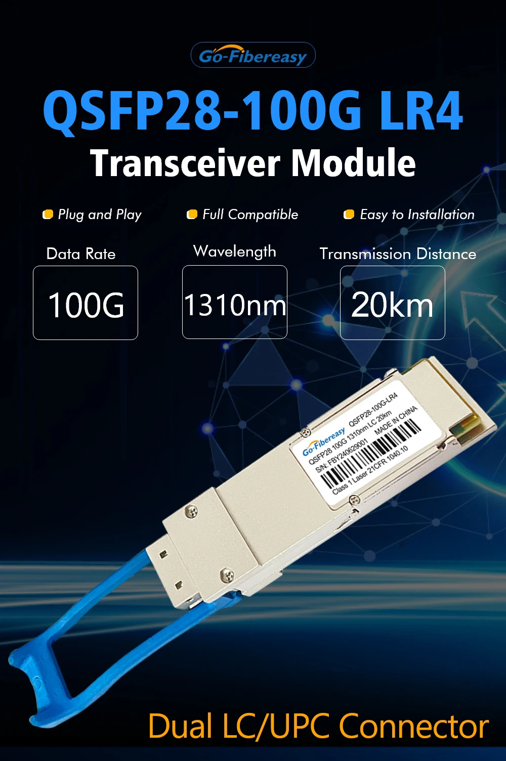 QSFP28-100G-LR4-20km 100GBASE-LR4 1310nm 20km Conector de fibra dúplex LC/UPC Módulo transceptor SMF QSFP28