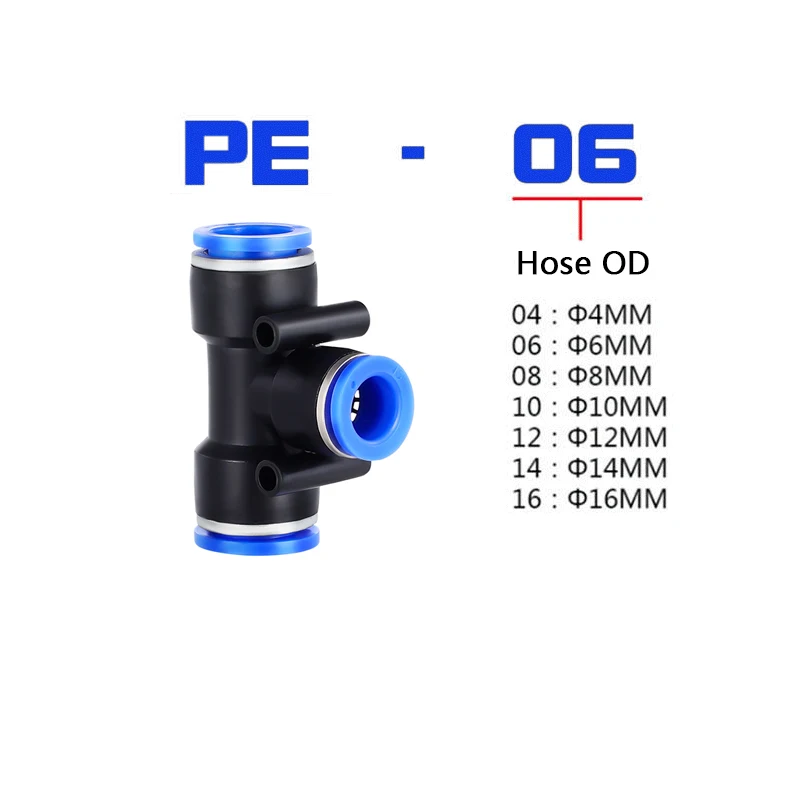 100PCS Pneumatic Air Fittings Three Ways Hose Connectors Reducing Joint PE 6mm 8mm 10mm 12mm 14mm Push To Connect Pipe Fitting