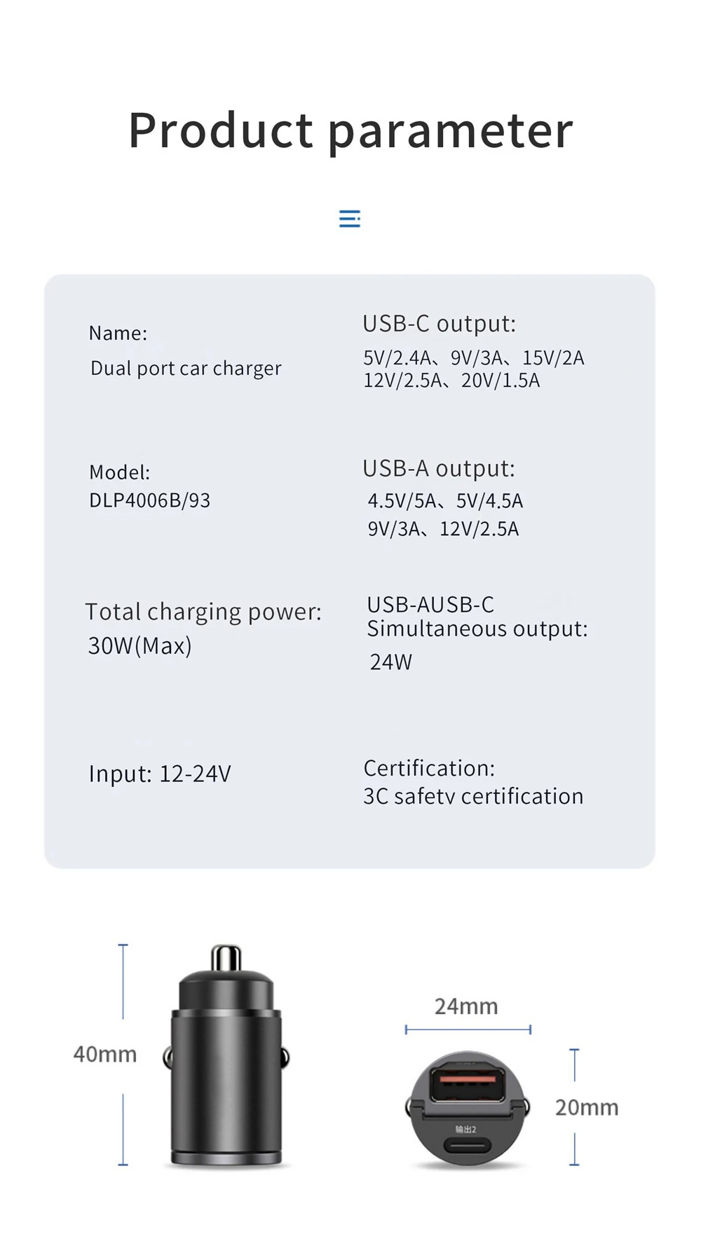 El producto admite carga rápida de 30 W para dispositivos universales, excepto el protocolo de carga VOOC y más de 1 dispositivo.
