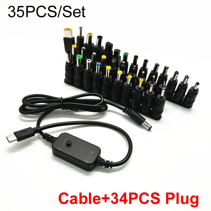 100W 5V/9V/12V/15V/20V Pantalla digital Voltaje ajustable USB TYPE-C 5521 DC Jack Conector Alimentación Modem Óptico Enrutador Notebook PD Adaptador de cable de carga rápida para Lenovo Asus Hp Acer Laptop