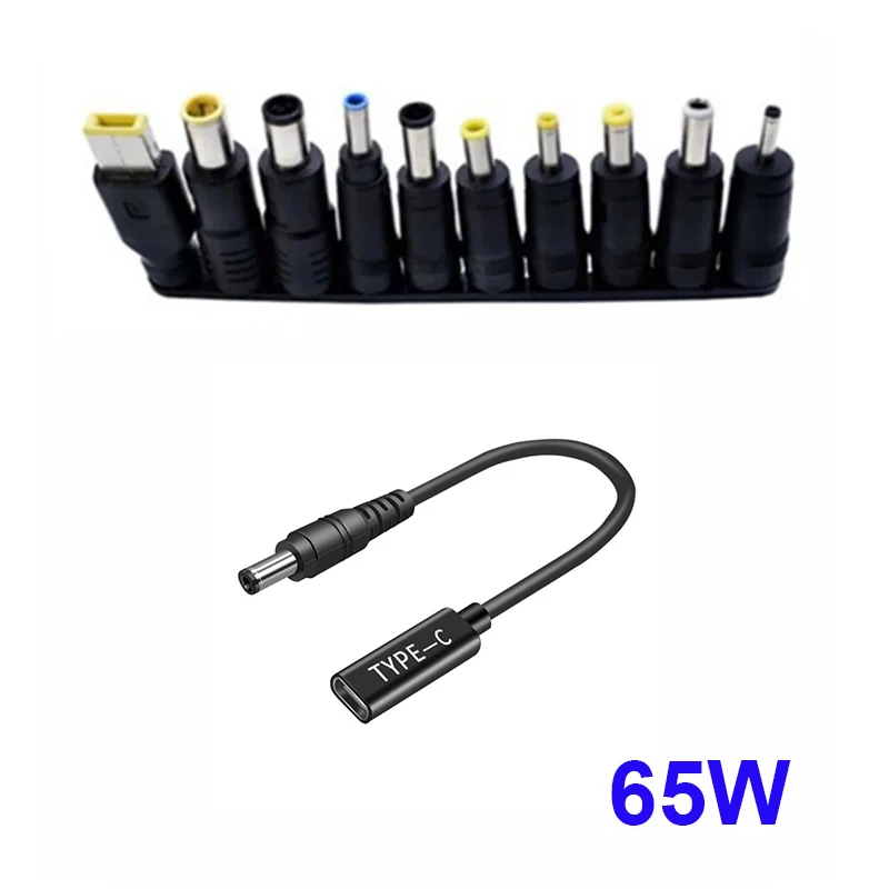 Adaptador de 65 W + 10 piezas con tipo C hembra a CC macho