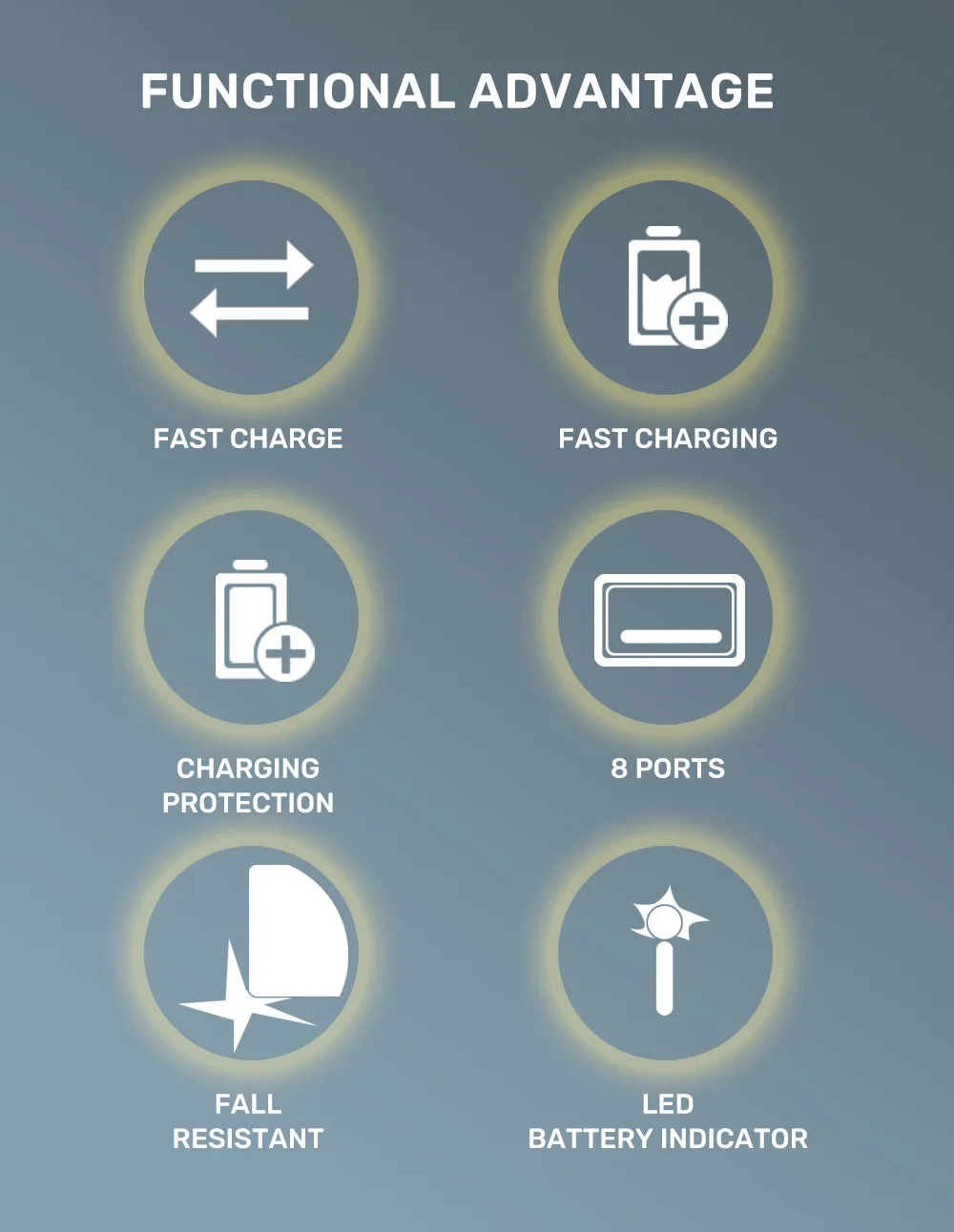 Tipo de puerto: 4 puertos USB A + 3 puertos QC3.0 + 1 puerto PD3.0