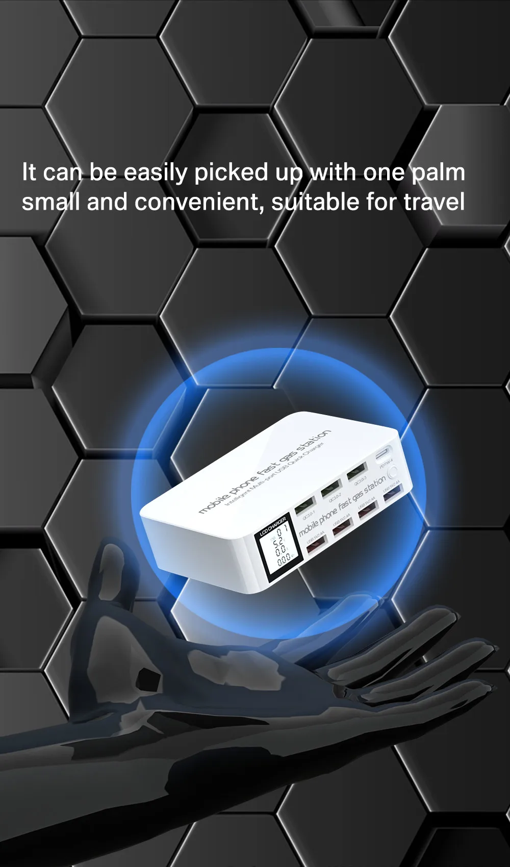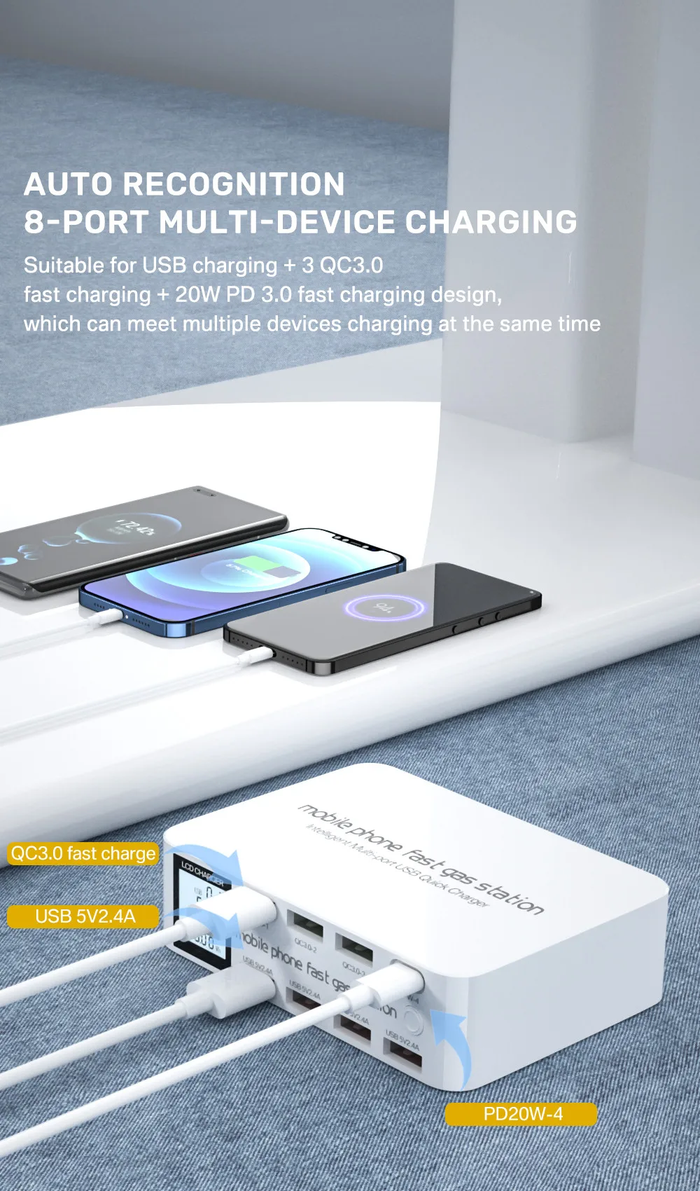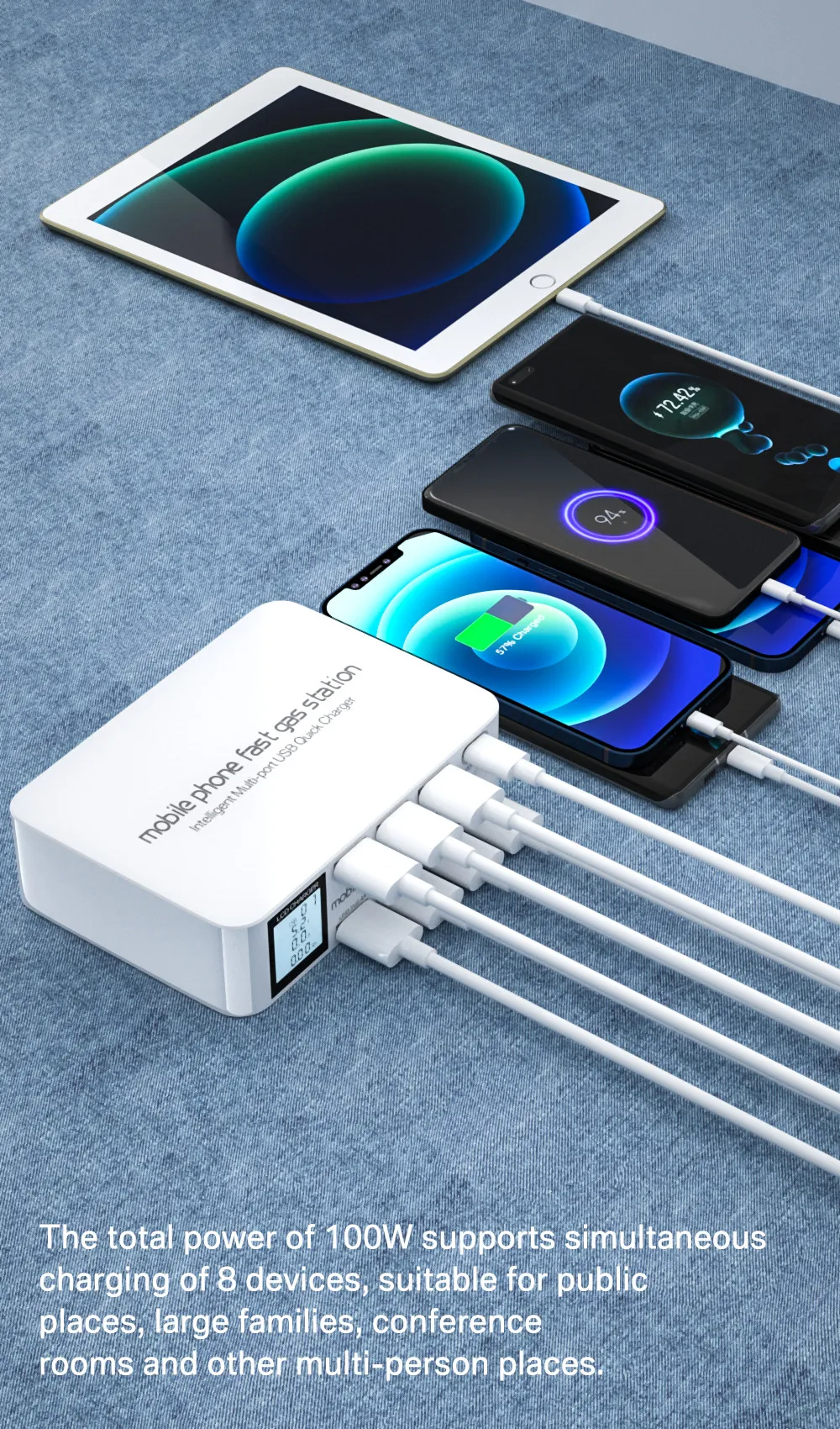 1. Con 4 puertos USB A, 3 puertos QC3.0 y 1 puerto pd3.0.