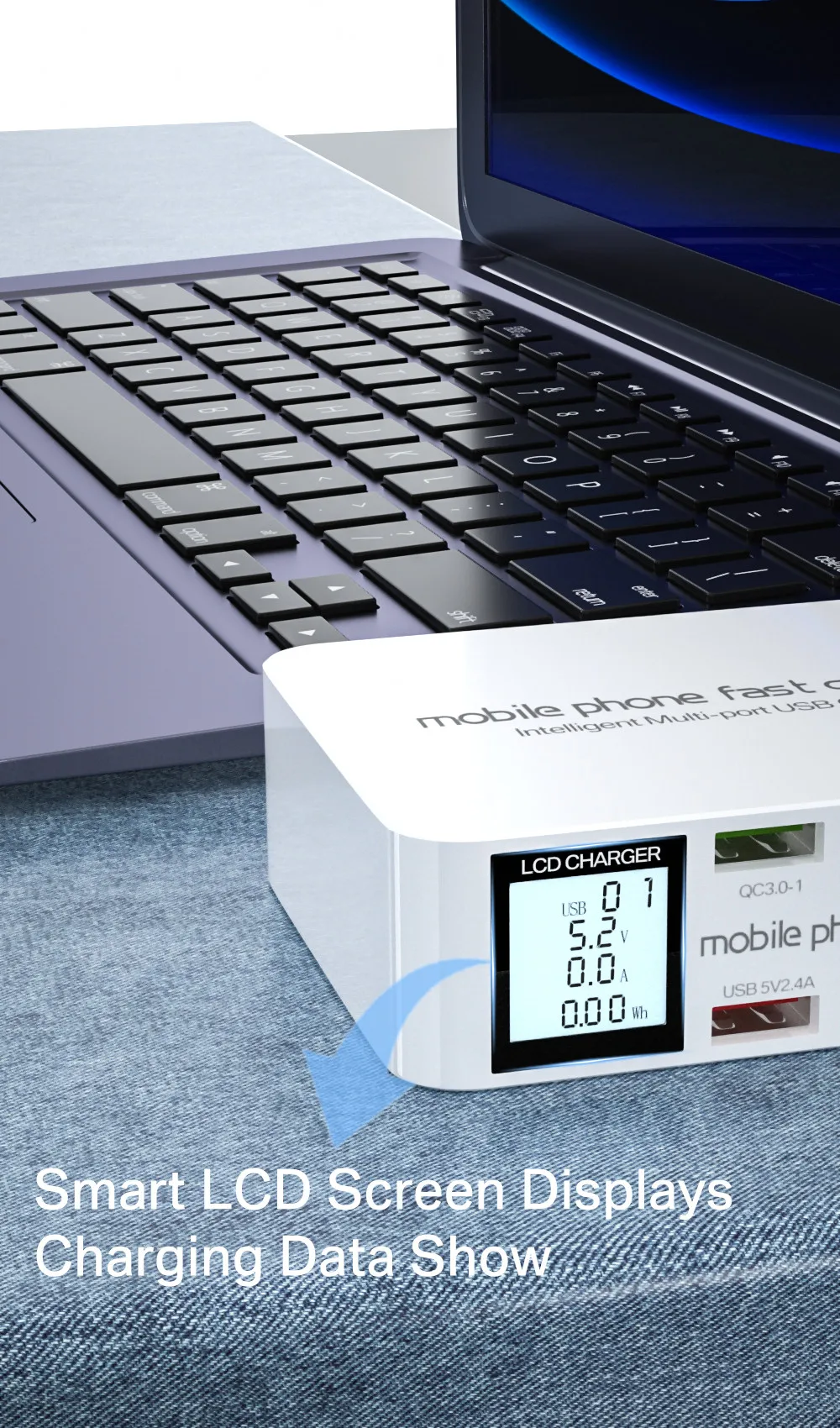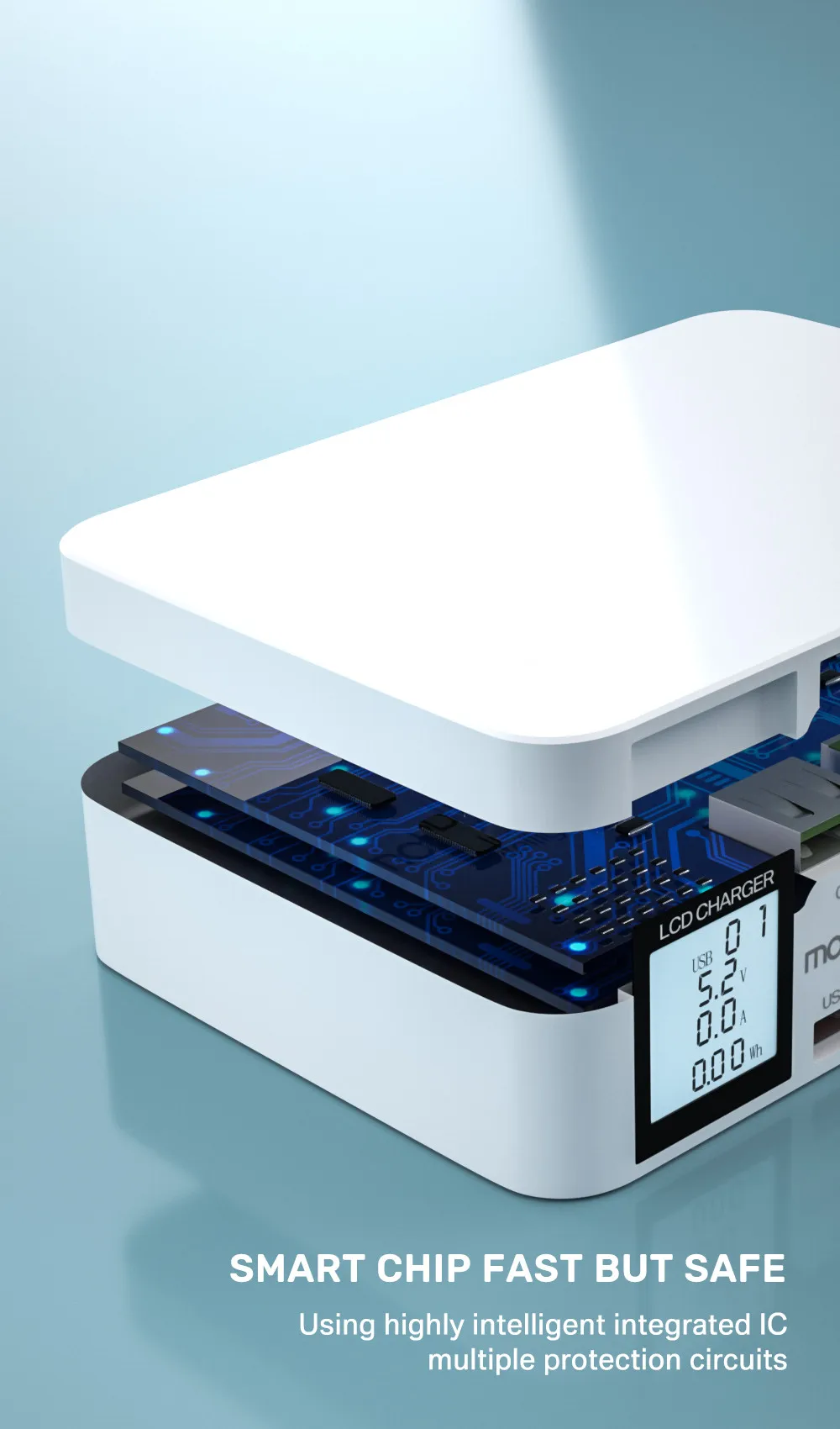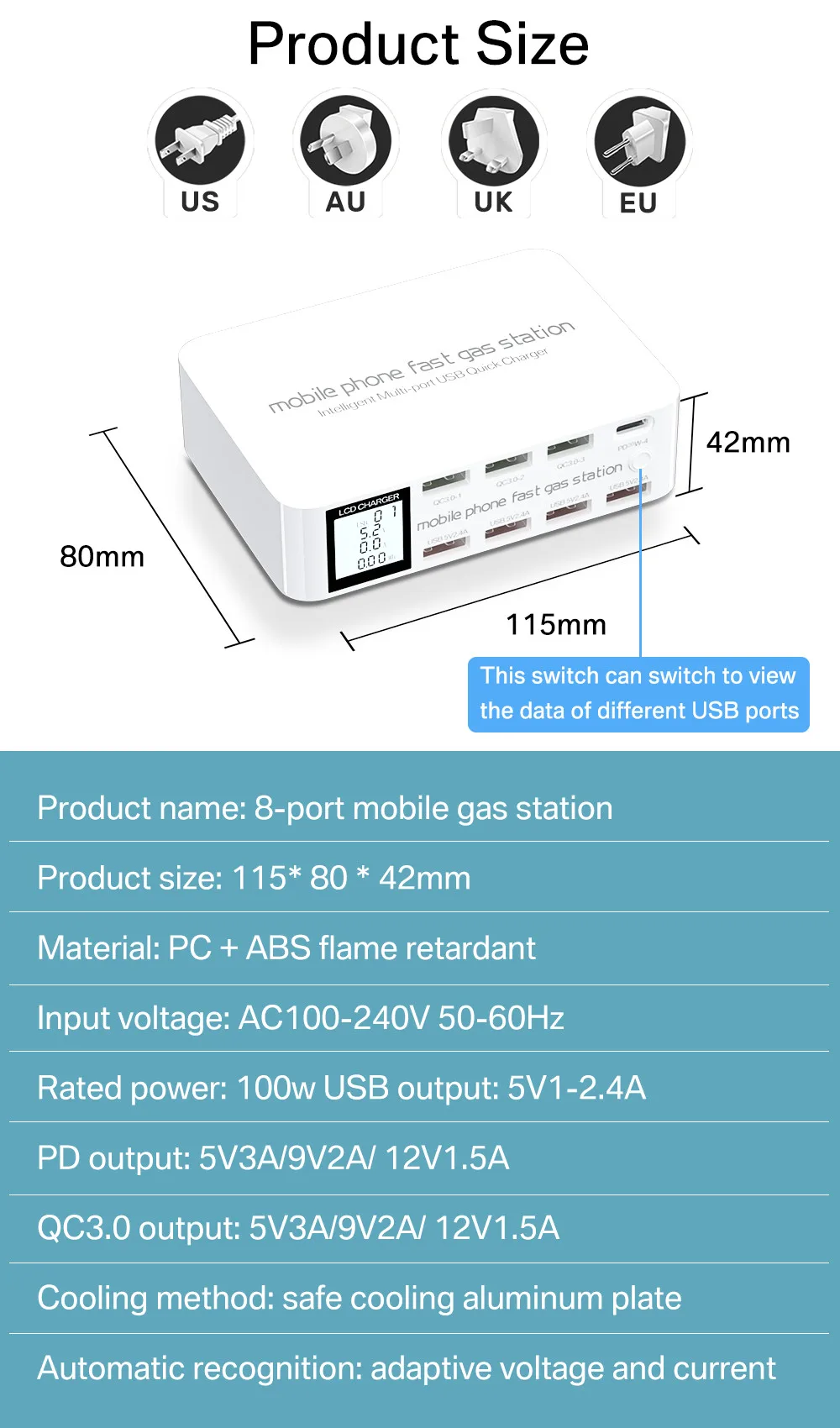 1. Con 4 puertos USB A, 3 puertos QC3.0 y 1 puerto pd3.0.