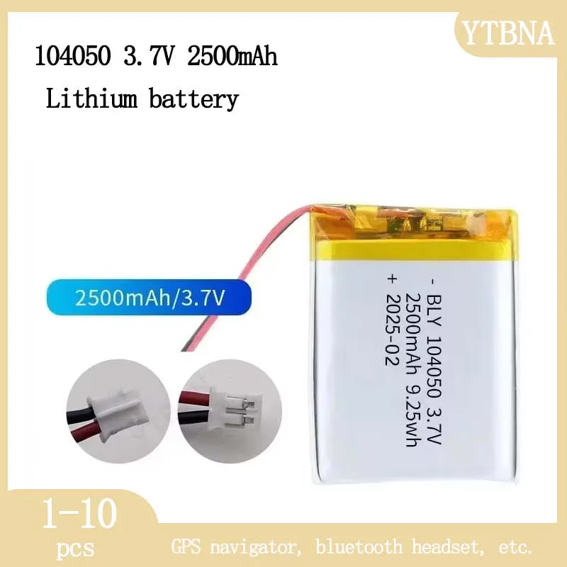 Batería recargable de polímero de litio 104050 3.7V 2500mAh para navegador GPS auriculares Bluetooth controlador de juego PS4 walkie-talkie