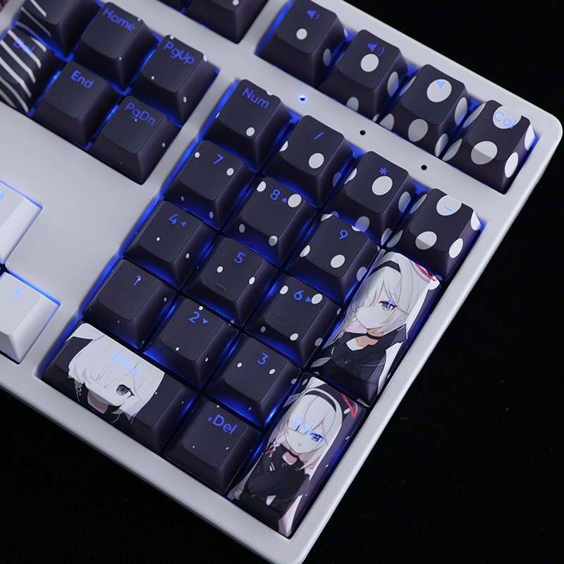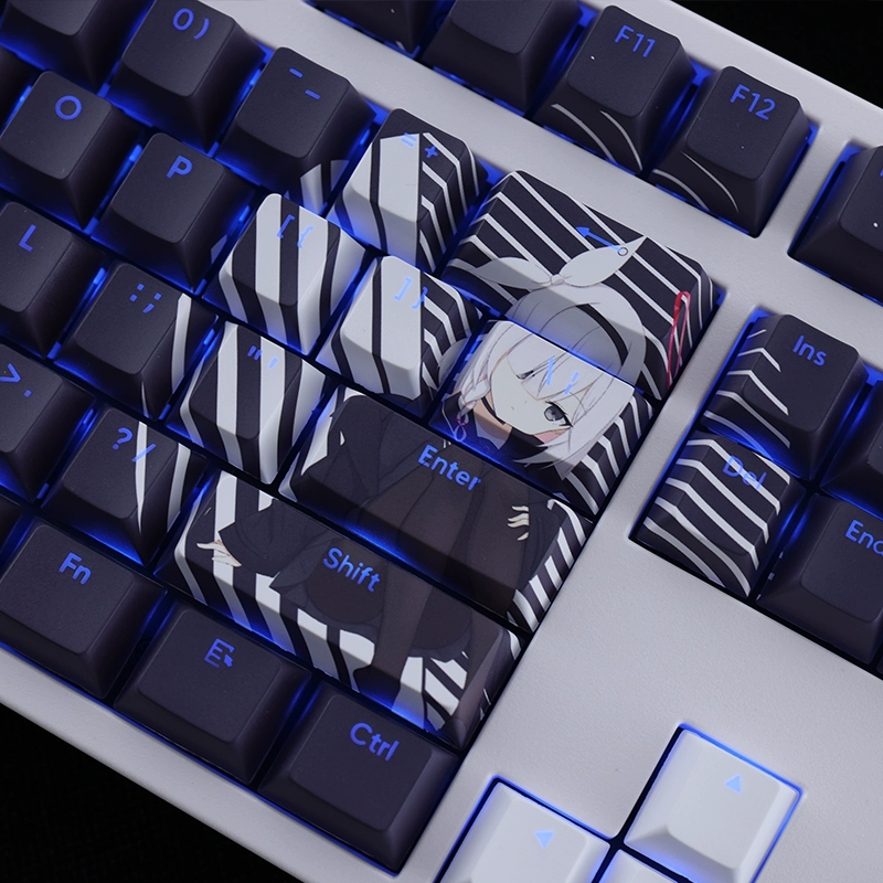 Comprar 108 teclas/juego de teclas de Arona negras de archivo azul, teclas retroiluminadas con subcama de tinte PBT, teclas de dibujos animados de Anime para juegos para ANSI 61 87 104 108