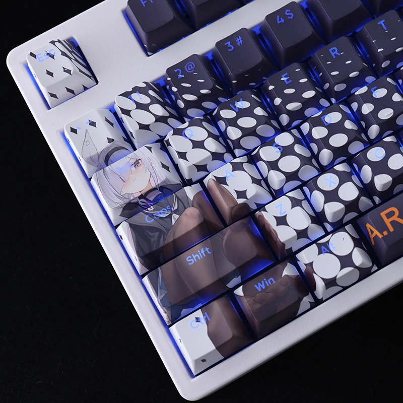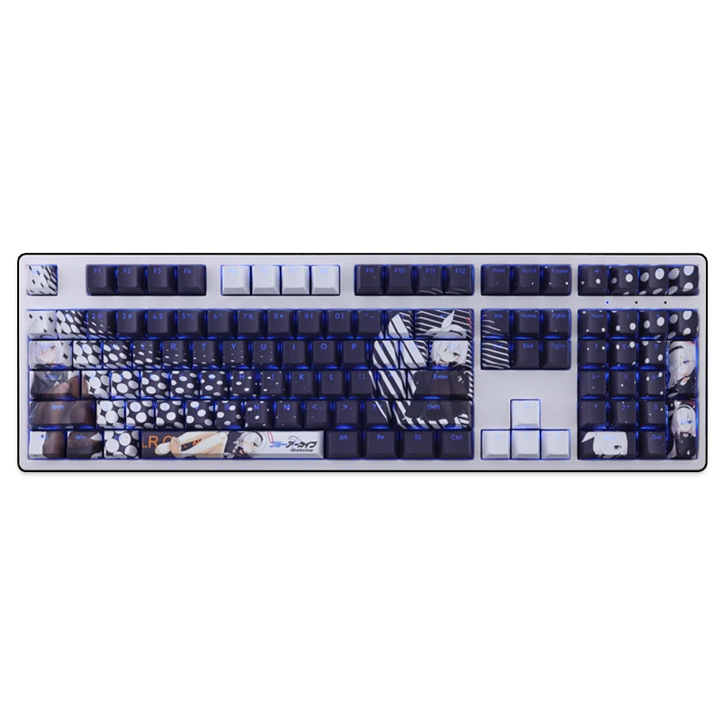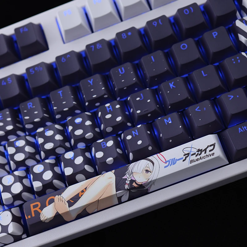 Comprar 108 teclas/juego de teclas de Arona negras de archivo azul, teclas retroiluminadas con subcama de tinte PBT, teclas de dibujos animados de Anime para juegos para ANSI 61 87 104 108