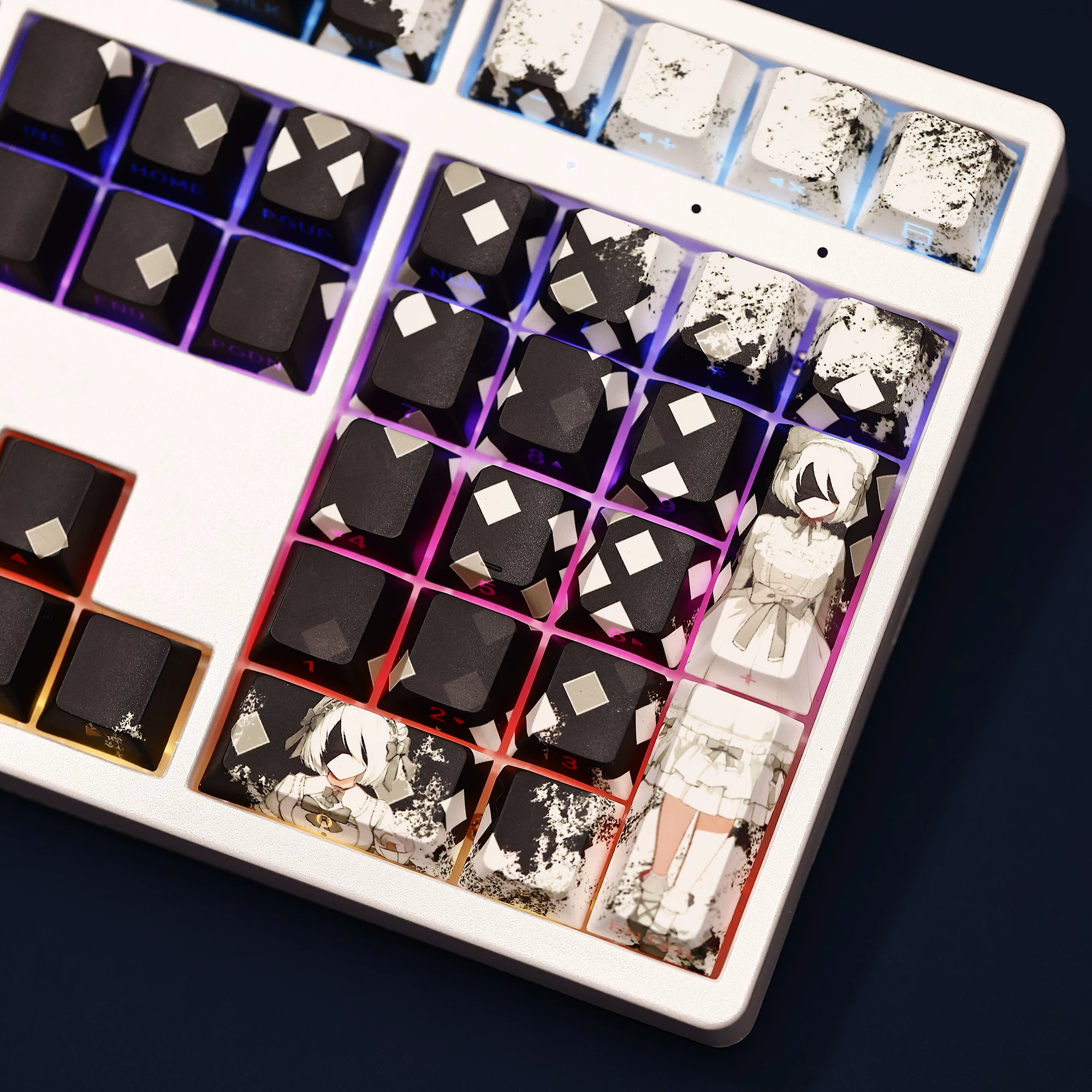 108 teclas YoRHa No2 White Maid Edition Keycap PBT tinte subcama lado impreso retroiluminado Keycaps Anime Key Caps para ANSI 61 87 104 108 - imagen 5