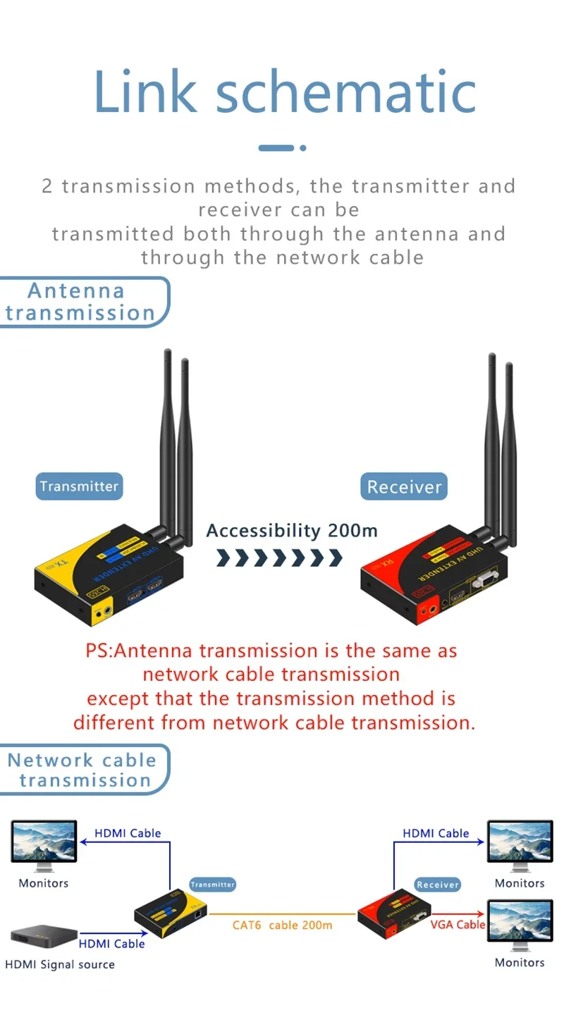 Comprar 1080p 4K 5G 200M inalámbrico HDMI compatible Audio Video transmisor receptor extensor divisor soporte VGA salida Cable de red Cat6