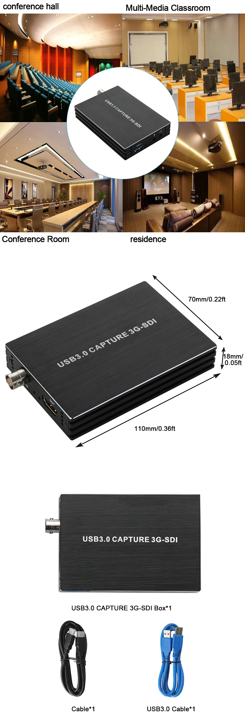 Puede capturar señales de entrada 3G-SDI, salida 1080p y USB 1080p60.La captura de vídeo SDI cumple con los estándares UVC y UAC, sin tener que instalar controladores ni configuraciones, el PnP real, fácil de usar.Característica1.No es necesario instalar un controlador y es verdaderamente PnP.2.Es compatible con los sistemas operativos Windows, Linux, OS X.3.USB3.0, rendimiento de 300-350 MB/s y es compatible con USB 2.04.El proceso de vídeo y audio lo realiza el dongle y no ocupará la CPU.5. Puede capturar señales de vídeo SDI de un solo canal.6. Puede detectar automáticamente los formatos de vídeo de entrada y se ajustará automáticamente al tamaño de salida y la velocidad de fotogramas establecidos.7. Admite entrada SD-SDI/HD-SDI/3G-SDI.8. Admite SDI a HD 1080p60 (salida de bucle HD 1080p60).9. Admite entrada de micrófono y salida de audio.10. Adecuado para dispositivos con salida SDI como cámara domo SDI, endoscopio médico HD, imágenes médicas, transceptor óptico SDI, SDI DVR, solución de estación de radioEspecificaciónInterfaz de host: USB3.0, *300-350 MB/s, USB2.0, *40 MB/sInterfaz de entrada: interfaz SDIFormatos de entrada SDI: SD-SDI,HD-SDI,3G-SDIFormatos de salida: 480i, 480p,576i,576p,720p,1080i,1080PResoluciones de formatos de salida USB3.0: 640x360/800x450/1280x720/960x540/1920x1080Velocidad de fotogramas: 30/40/48/50/59,94/60 fps¿Cómo utilizar OBS para grabar vídeo?Paso 1: Haga clic: + Elija: Dispositivo de captura de videoPaso 2: Dispositivo: elija "Captura de vídeo HD USB3.0"Paso 3: Resolución/Tipo de FPS: Elija "Personalizado" Elija "1920x1080Paso 4: Modo de salida de audio: elija "Salida de audio de escritorio (Sonido directo)" √ Dispositivo de audio personalizado USBPaso 5: Dispositivo de audio: elija "Captura de audio HD USB3.0Paquete:1X captura SDI a USB1 cable USB3.01 cable HD1 manual de usuario en inglés.Comprar 1080P 60FPS 3G SDI a USB3.0 USB 3,0 captura de vídeo tarjeta de captura grabar transmisión en vivo para cámara domo SDI HD endoscopio médico