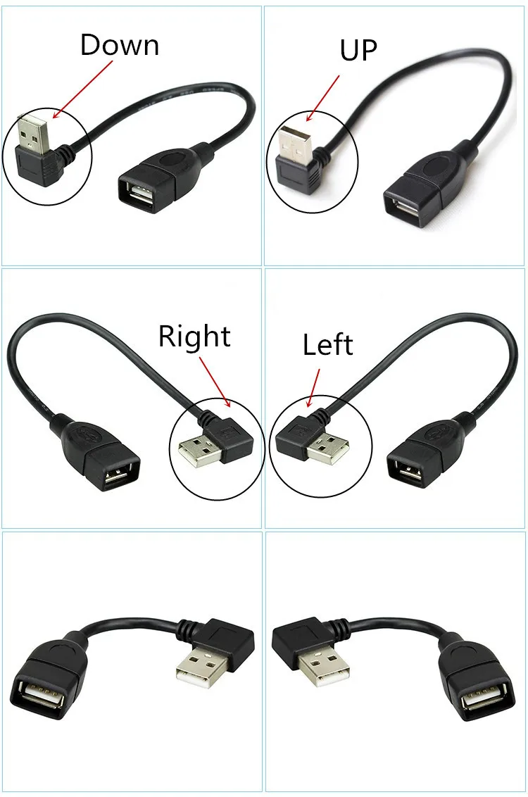 Comprar 10cm 20cm 50cm USB 2,0 A macho A hembra 90 cable adaptador de extensión en ángulo USB2.0 M/F derecha/izquierda/abajo/arriba cable negro