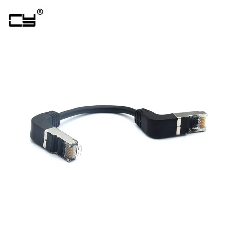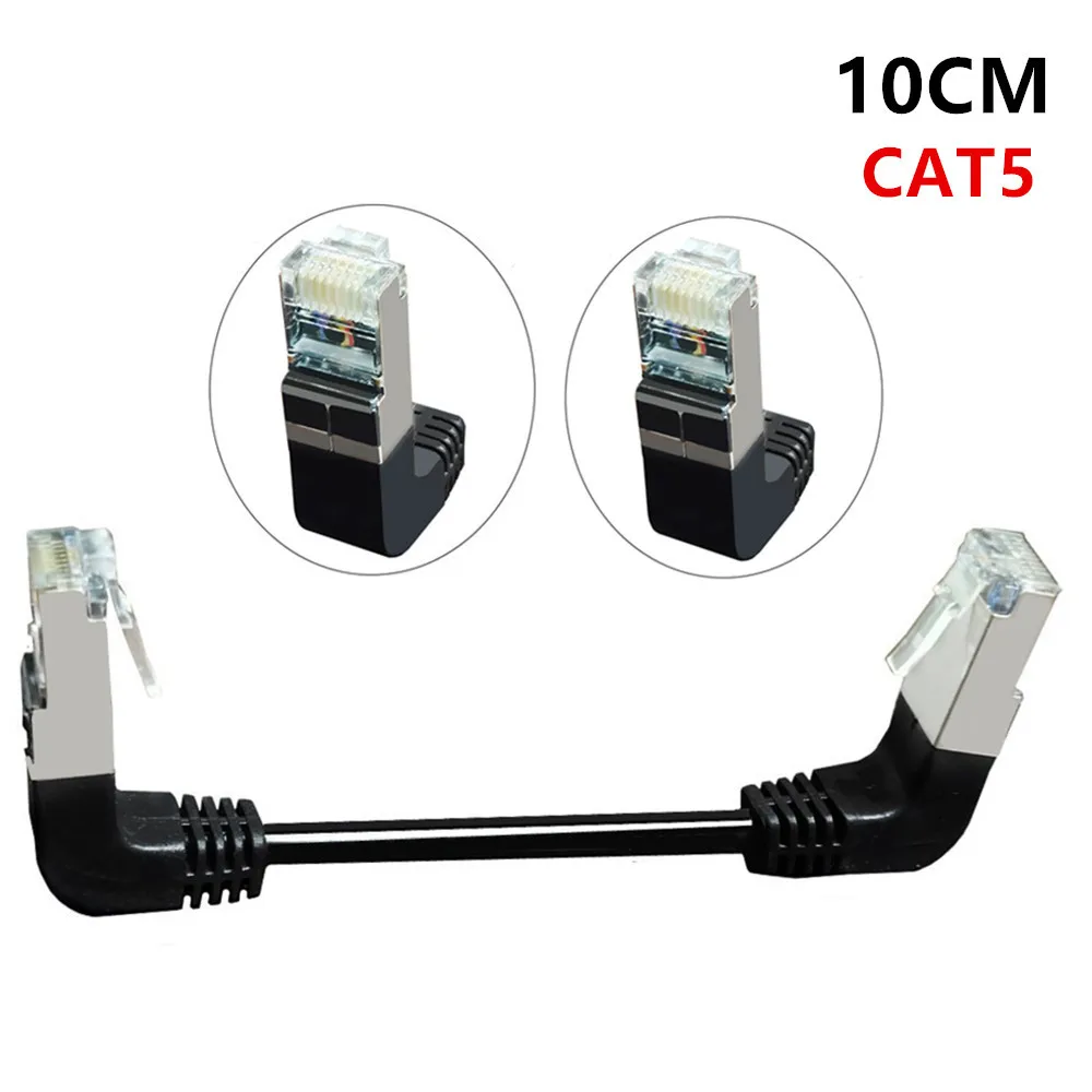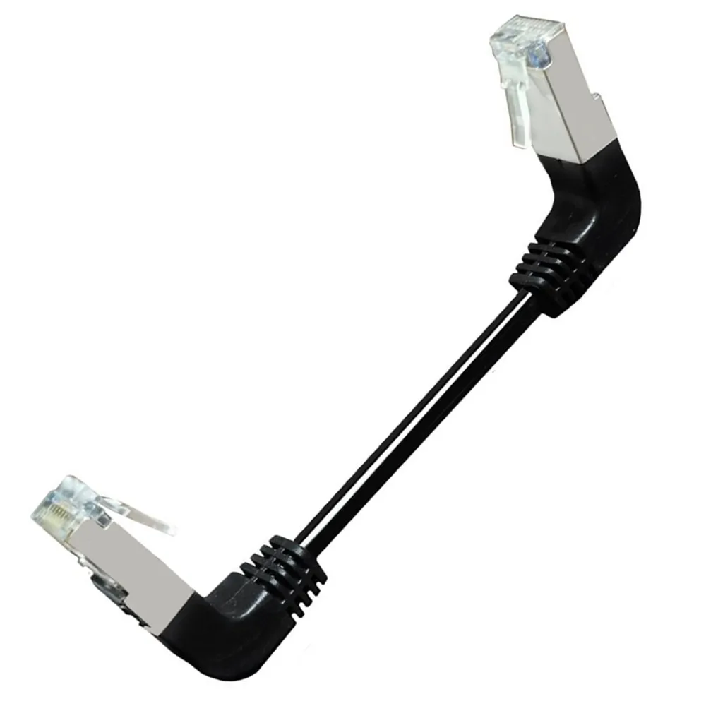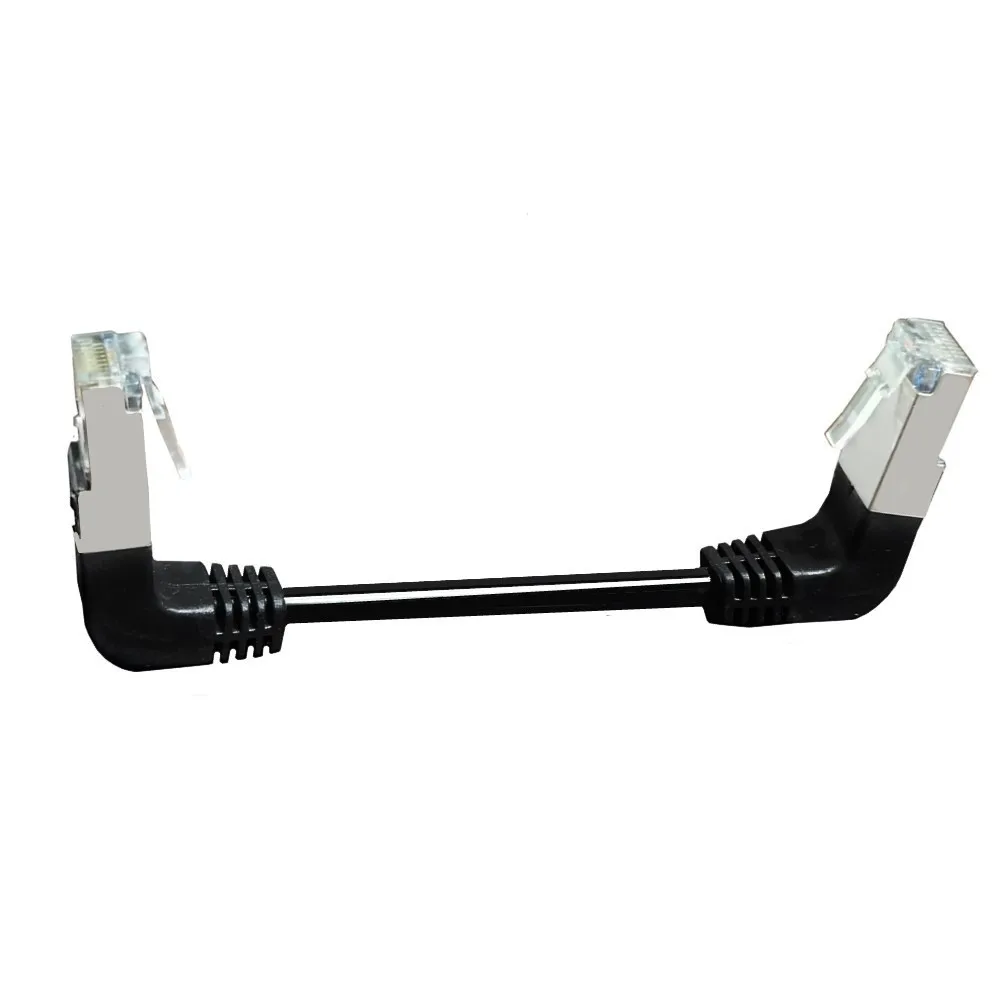 Double Elbow Down & Down Angled 90 Degree cat5e 8P8C FTP STP UTP Cat 5e Ethernet Network Cable RJ45 Lan Patch Cord connector is Double Down Angled 90 Degree 8p8c plug. Length: 10CM 8p8c RJ45 male to male connector with Shield Work for any ethernet.
