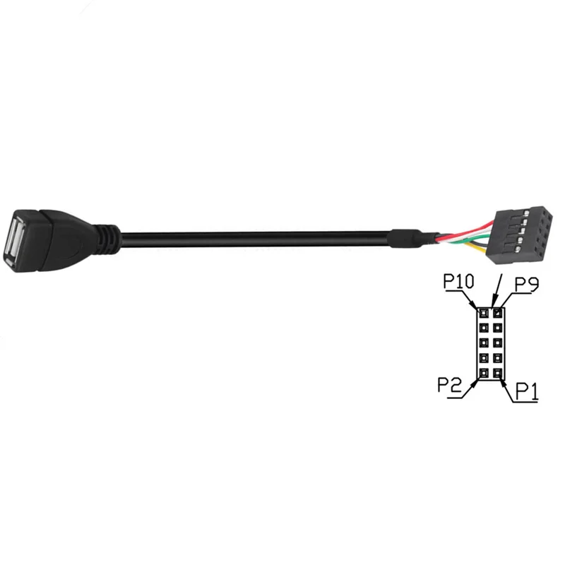 Cable de placa base PCB con cabezal USB 2,0 tipo A hembra de 10 CM a 2x 5 pines hembra 2.54 USB