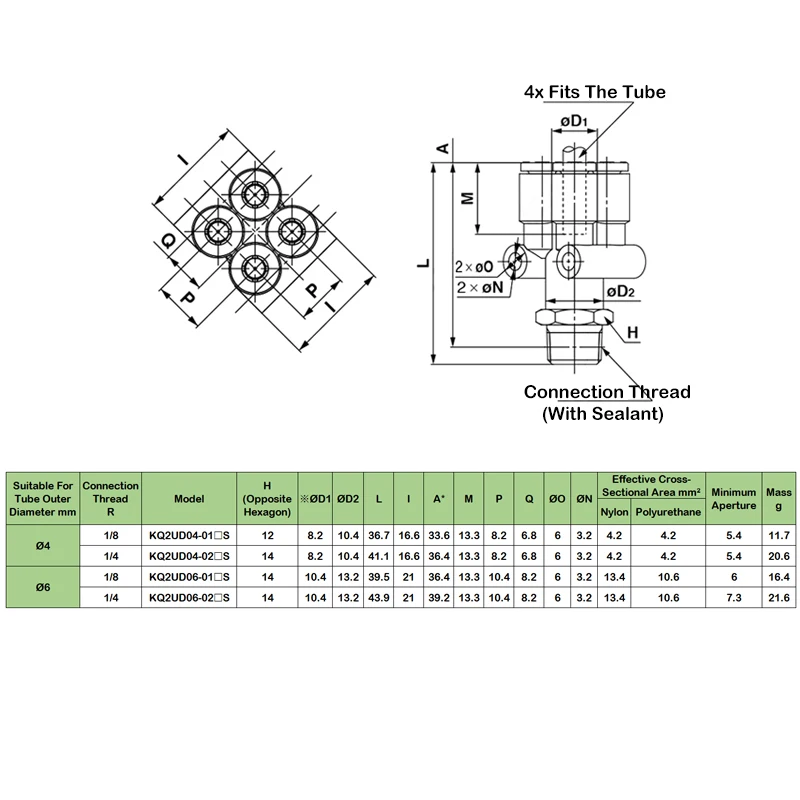 10PCS Y-Type External Thread Variable Diameter 1 In 4 Out 5-Way Equal-Diameter Trachea Quick Plug KQ2UD04/06-01/02AS
