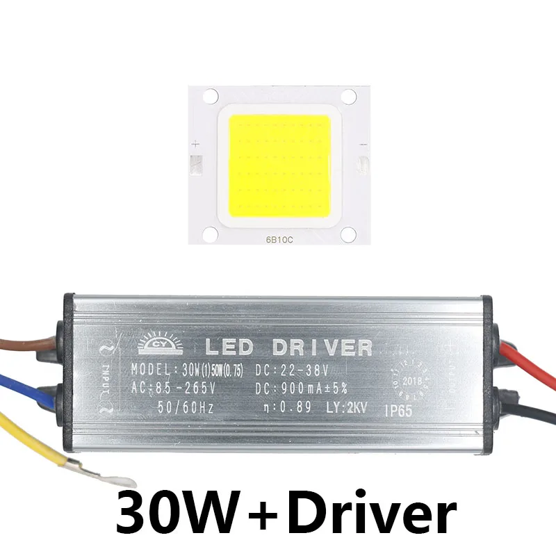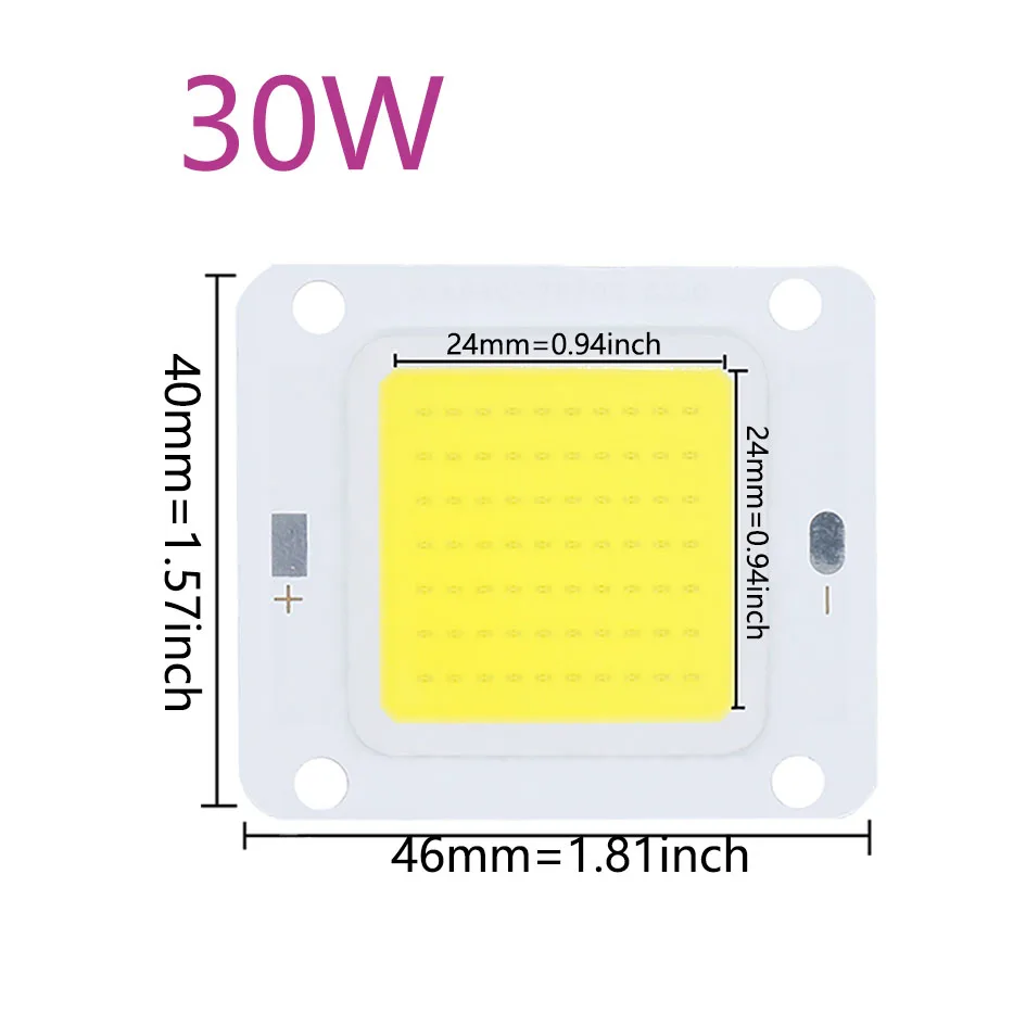 Modulo led cuadrado de 40x46mm de 30w, 30V. Tiene una placa de alumio posterior para disipar el calor producido.